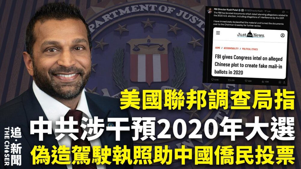 美國聯邦調查局(FBI)局長帕特爾(Kash Patel)向國會提交最新報告,點名指中共干預2020年美國大選。聯邦調查局指有證據顯示,中國政府當時偽造大量美國駕駛執照,再運往美國製造假選票,以投票給最終勝選的民主黨候選人拜登(Joe Biden)。帕特爾稱內容令人震驚,他已下令將資料解密,並交予參議院司法委員會主席格拉斯利(Chuck Grassley)審視。