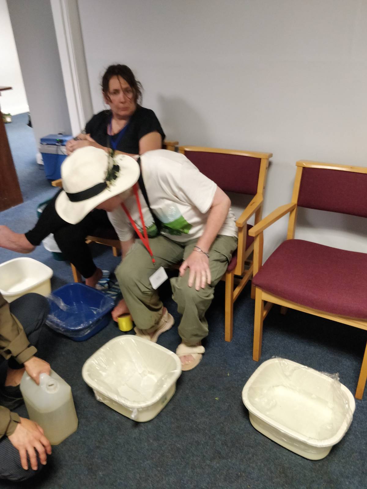 - 朝聖者浸腳舒緩疲勞。(圖片由讀者提供)