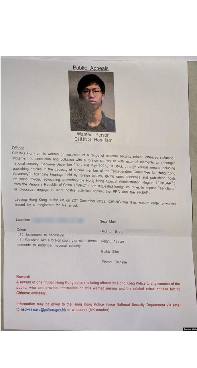 去年平安夜遭港警國安處懸紅通緝的海外港人劉珈汶、鍾翰林,周四(5日)在英國內政部會見國務大臣翟偉紳(Dan Javis)與外交部印太事務次官衛倩婷(Catherine West),雙方主要就被港警通緝後,接連出現誘捕他們到中國大使館領懸賞的舉報信作出跟進。國際特赦組織(Amnesty International)會員Vrigitte在六四集會向《追新聞》記者表示,她在居住的地方曾接獲來自中共發出的信件,已直接向當區議員呈上信件及反映跨境鎮壓在社區蔓延。