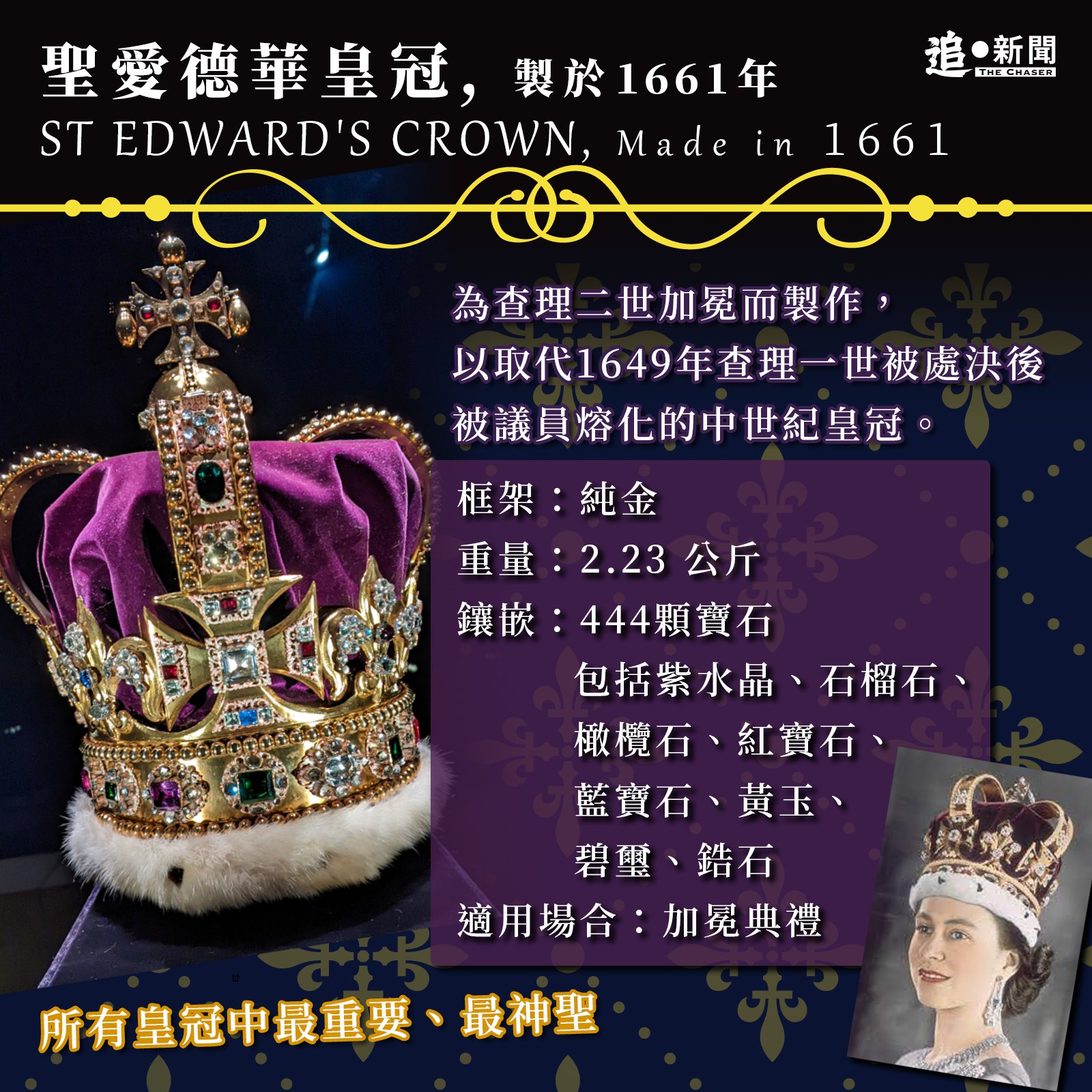 圖解DATA / 2022 年 7 月 20 日 圖解DATA|照耀至女皇生命最後 倫敦塔守護的王權之物 文字:《追新聞》記者 圖解DATA 過去的一周,全球目光都聚焦在蓋上英國皇家旗的女皇靈柩上。靈柩上安放着象徵皇權的帝國皇冠、十字聖球及十字君主權杖,直到女皇下葬一刻。這些寶藏收藏於倫敦塔的Jewel House,受武裝軍人保護。公眾可於英國政府Hirtoric Royal Palaces網頁購票入場,參觀限時一小時,注意Jewel House內不可拍攝。 本周【圖解DATA】與大家分享英國皇室最重要,於加冕儀式總有蹤影的幾件皇權之物,下次到倫敦旅遊也可以到倫敦塔一睹它們的璀璨。 標籤: 倫敦塔, 皇冠, 皇室 一齊撐起《追新聞》 訂閱《追新聞》Patreon 支持,閱讀所有「追・新聞」、「追・專題」以及「追・專欄」的全部報道內容,有賴讀者付費月訂或年訂支持營運。 訂閱支持