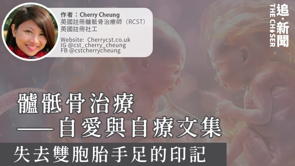 其中一位個案是一名五十多歲的男士,自童年起便長期受憂鬱情緒困擾,時常莫名地落淚,卻無法理解其中的原因。在一次髗骶骨療法的療程中,當我將手輕放在他的背部時,他突然放聲痛哭。他形容自己清晰地感受到,曾經有一位雙胞胎兄弟「住」在他的身後。那是一種既熟悉又令人驚異的感受——彷彿他一直在尋找的答案終於浮現。他哭得深沉,卻帶着一種釋然的美麗,因為他終於理解,自己這一生在的哀傷是來自對雙胞胎兄弟的無聲哀悼。療程結束後,他分享了一個從未察覺的行為模式:他總是習慣購買成對的物品,例如在咖啡店落單時,常常無意識地點了兩杯,直到手裏拿着兩杯咖啡時才發現。