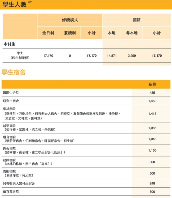 現時香港各間大學宿舍宿位都嚴重不足,以中文大學為例,若不計算研究生宿舍,9間書院連同國際生舍堂合共提供7,770個宿位,連同今年落成的新亞書院新宿舍(梅雲堂),以及正動工的聯合書院和逸夫書院兩幢新宿舍,也只有8,620個宿位,而本科生總數則有17,170人,即目前入宿率只有45%,即使學生人數不變,新宿舍落成後入宿比率仍僅約一半。由於在中大各書院宿舍分配安排下,非本地生往往能取得極高分數,甚至接近「必宿」,故本地生實際住宿比例更低。