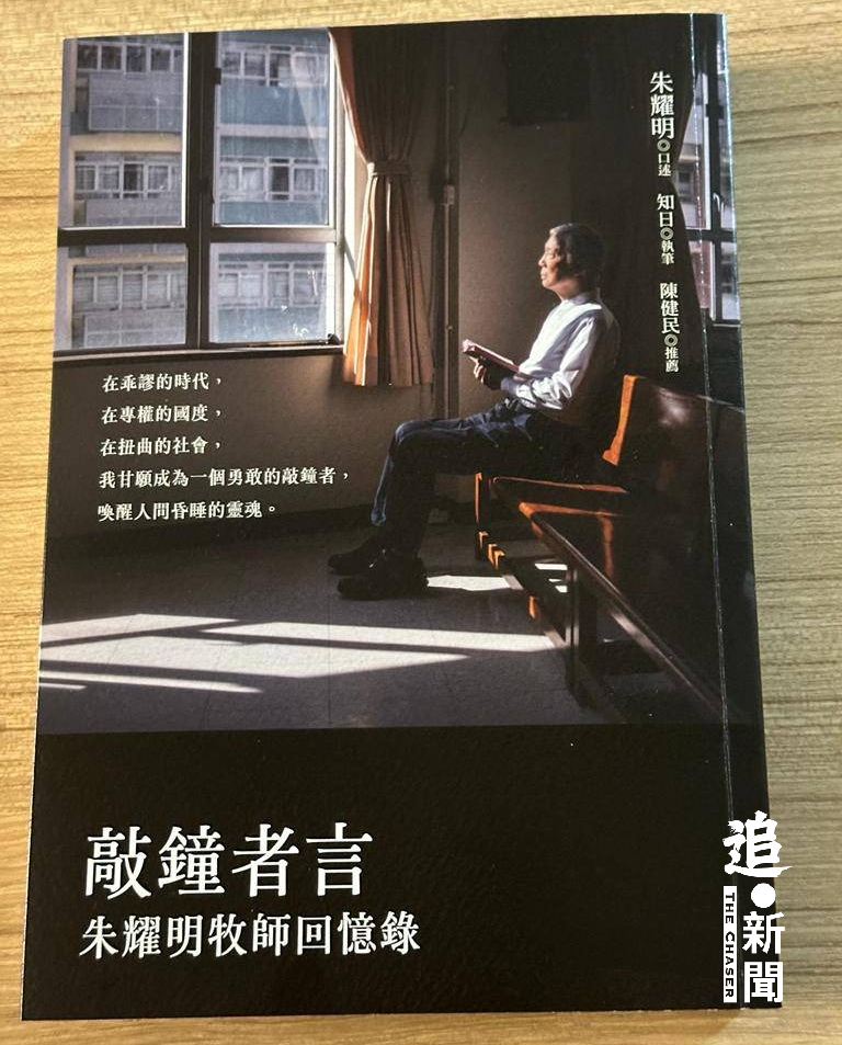問到《回憶錄》為甚麼不是親自執筆、選擇口述時,朱牧解釋,早年發表兩篇文章《我本無才》、《光輝的背後》講述他艱辛的童年如何掙扎求存,當時已執筆草擬大綱,後來柴灣浸信會擴堂、社會事務繁重,始終無法靜下來寫,「口述有唔完全的地方,但比較容易處理,將來話唔定可以有修訂嘅地方。」他提到,《敲鐘者言》書名來自他2019年就「佔中案」在法庭的同名陳情書,封面是《明報》副刊「星期日生活」記者捕捉他於六四30年獨坐禮拜堂副堂望着對面文理書院的一刻,他笑言:「我相信好多(人)買呢本書,係畀呢個封面吸引。」