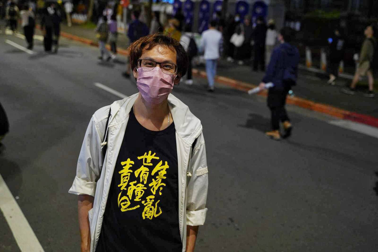在台生活3年多,2019年後來台的「哪吒」(上圖右一),以「Black bloc」造型帶同光時旗到場,看到立院外大家以音樂、畫畫、靜坐等方式和平表達訴求,認為「有少少似2014佔中」,他想用香港抗爭者身份表達對民主支持,對於三讀通過,他認為「要諗吓嚟緊有咩做,21日有3萬人,24日10萬人,到今天,立委好似對人數無動於衷」,呼籲大家想想接下來有何行動。
