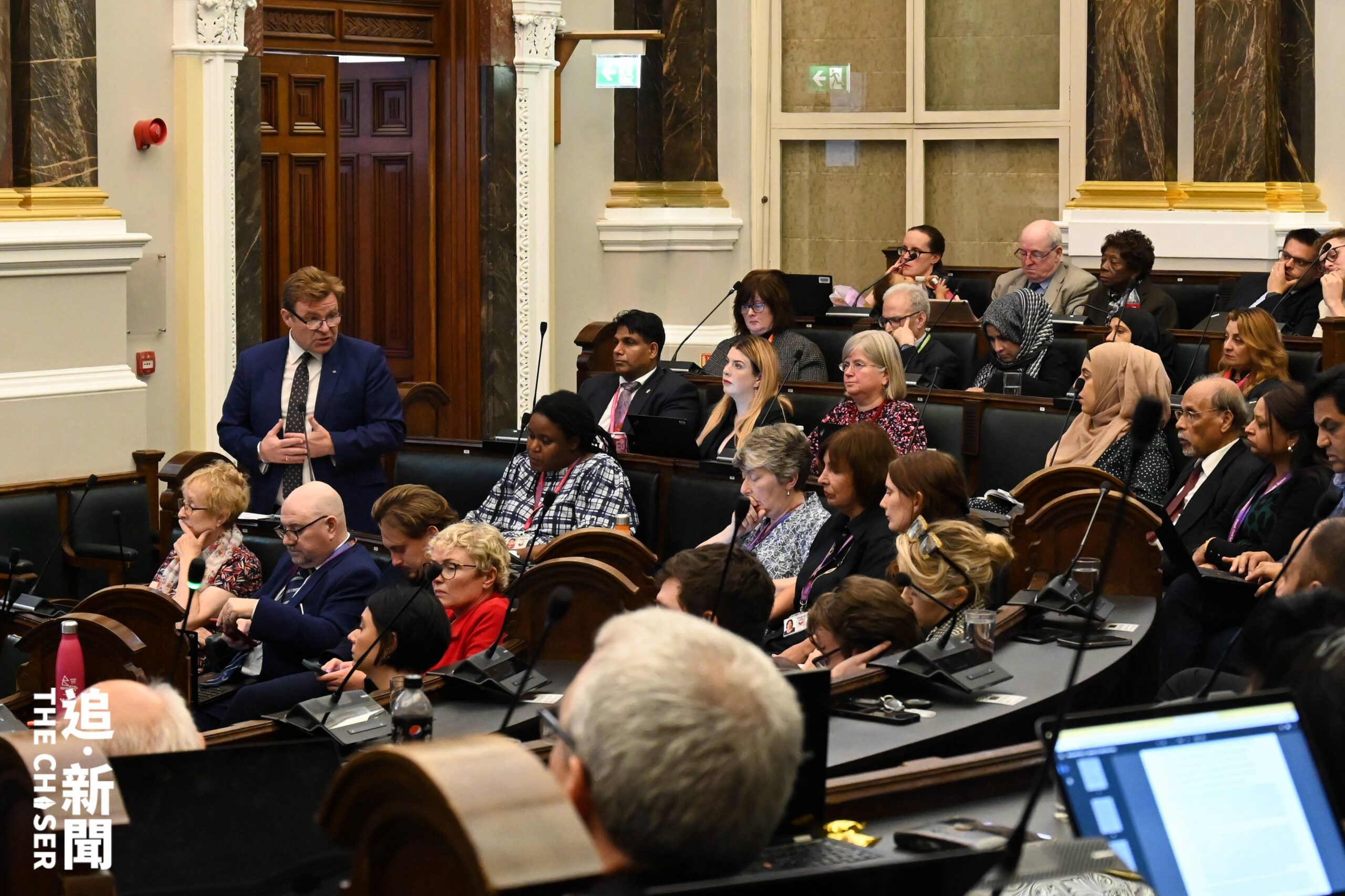 ▲伯明翰工黨領袖John Cotton(站立者)就市政府財困向公眾致歉,否認拖延處理。