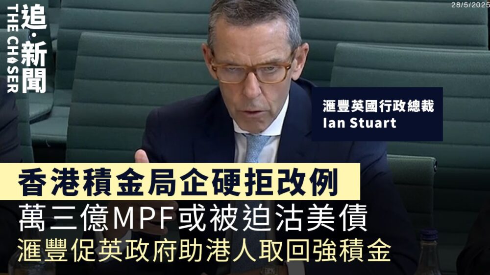 另一邊廂,透過 BN(O) 簽證計劃抵達英國的港人數目已超過16.3萬,但移英港人被拒提取強積金供款亦達32.5億英鎊(逾343億港元),單是滙豐銀行就佔10億鎊(逾105億港元)。滙豐銀行英國行政總裁 Ian Stuart 上周二(20日)出席下議院財政委員會的聽證會,被工黨的華裔國會議員楊緣問到移英港人無法領回強積金供款,形容事件在其選區的港人社群有極大回響,Ian Stuart 坦言是一大難題,「這對我們銀行來說極為棘手」,他稱銀行只有違反香港的法例才可能讓客戶提取供款,「香港的法律明確列出我們可以或不可以做的事」。Ian Stuart 認為,若英國政府能在外交層面發揮影響力,或可打破僵局。