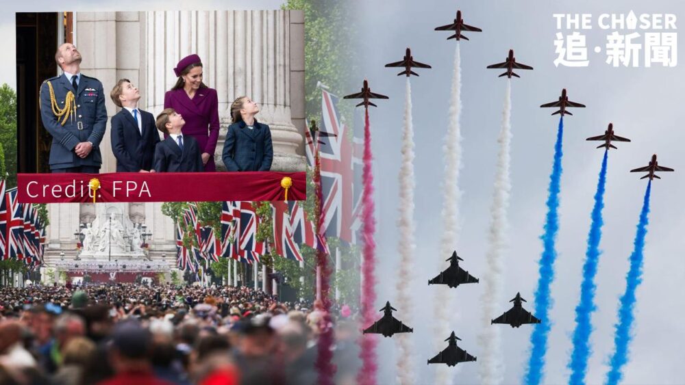 - 威廉皇儲一家觀看皇家空軍飛越白金漢宮一刻。(Credit: FPA)