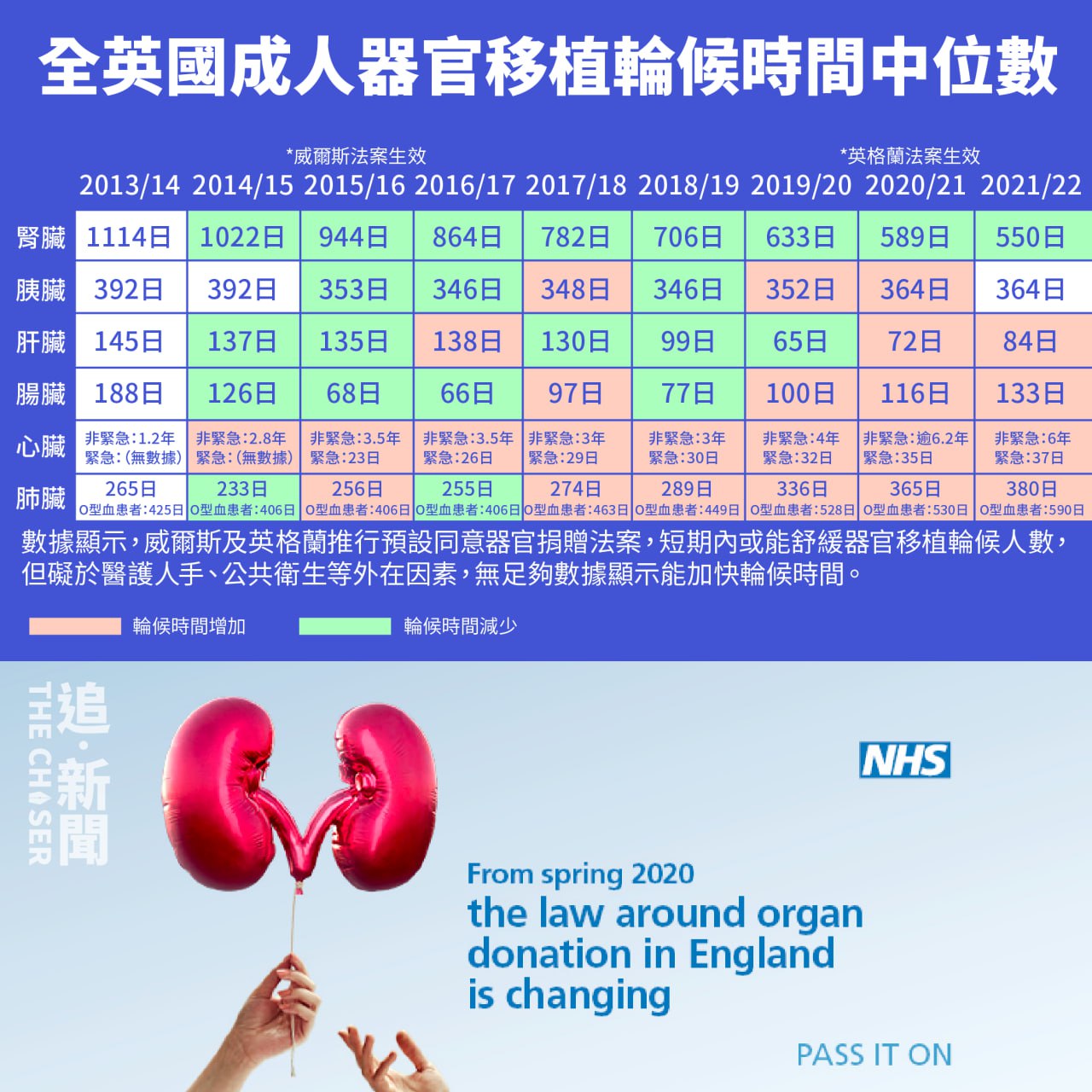 圖解DATA|英國居民登記GP =「預設同意」器官捐贈 自由opt-out冇犯法