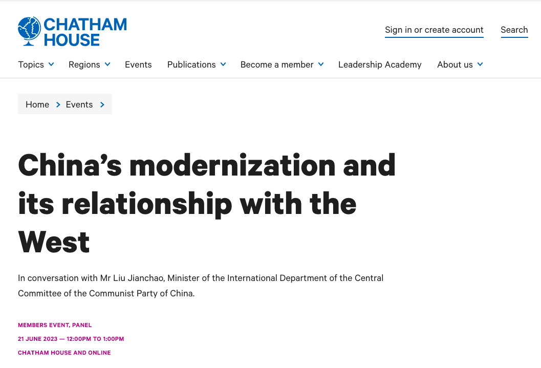 中國對外聯絡部部長劉建超這星期展開訪英行程,周三(21日)中午12時將於智庫組織「皇家國際事務研究所」(Chatham House)就中國現代化與西方關係發表主題演講。英國跨黨派國會議員與上議院議員致信英國首相辛偉誠,敦促他重新考慮劉建超訪英並發表演講的決定。 《衞報》報道,被強行遣返的海外受害者及其家屬正在商討,可否向西敏地方法院法官提出申請拘捕劉,理由是他被指控觸犯國際罪行。