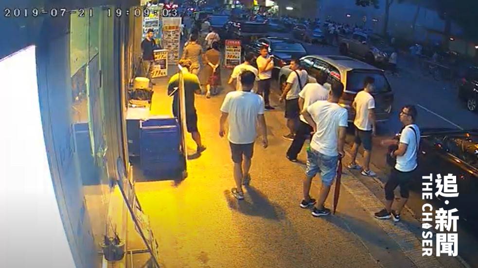 - ▲青木堂中醫診所的閉路電視拍攝到7.21當晚約7時,有大批白衣人聚集在鳳攸北街兩旁。
