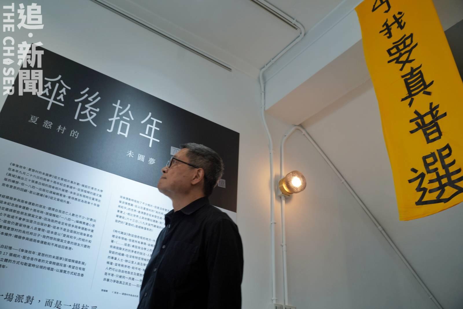 場內舉行「79 天的黑白記憶——《傘後拾年:夏愨村的未圓夢》張燦輝攝影展」,朱牧亦憶起當時畫面,不論是自修室,抑或分享的情況,眾人都展現出善良的一面,而這種善良,是香港的盼望。他又指在亂世當中,極權之下,活得磊落真誠是很重要。