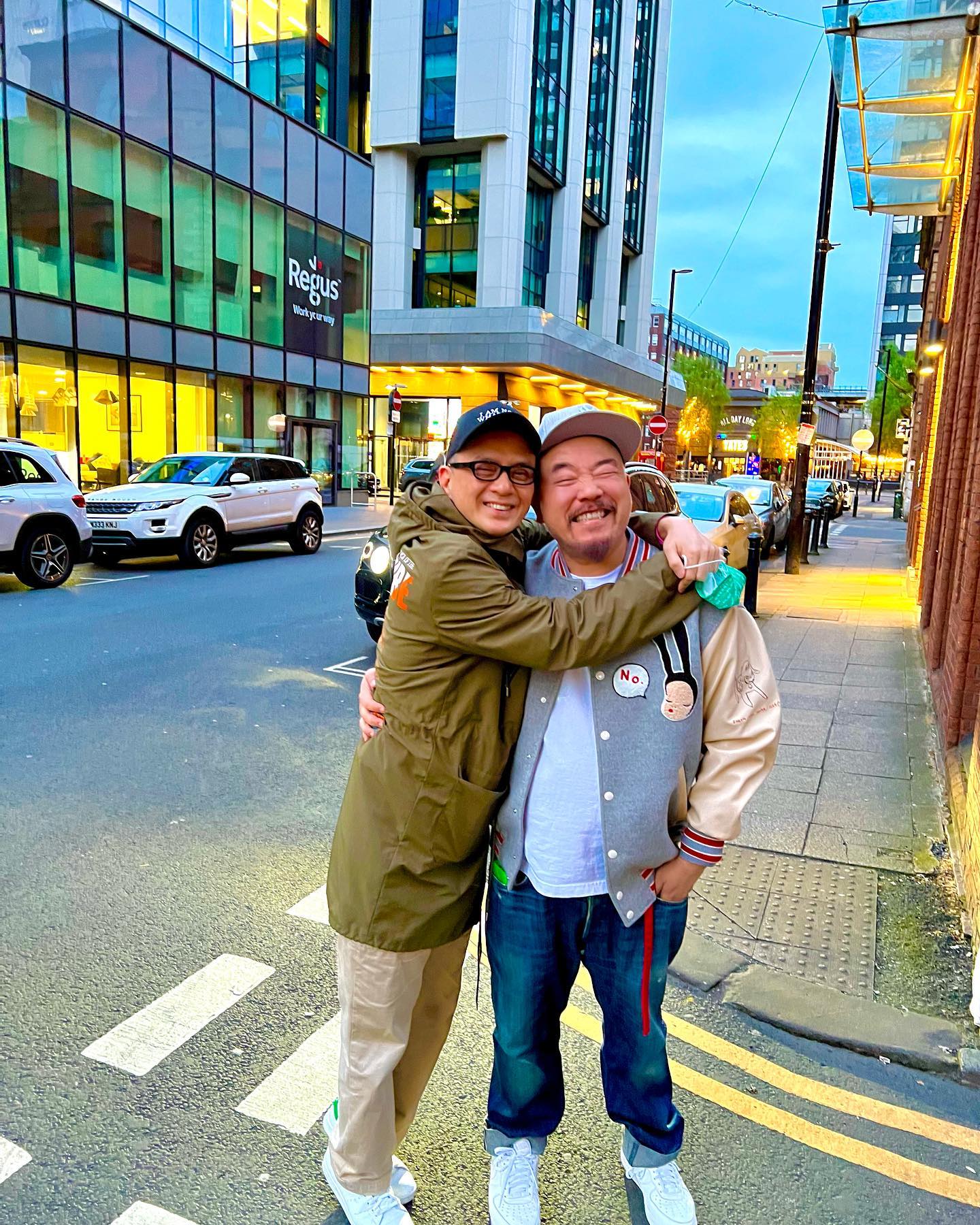 - 黃耀明在曼城唐人街與黃偉文重逢。