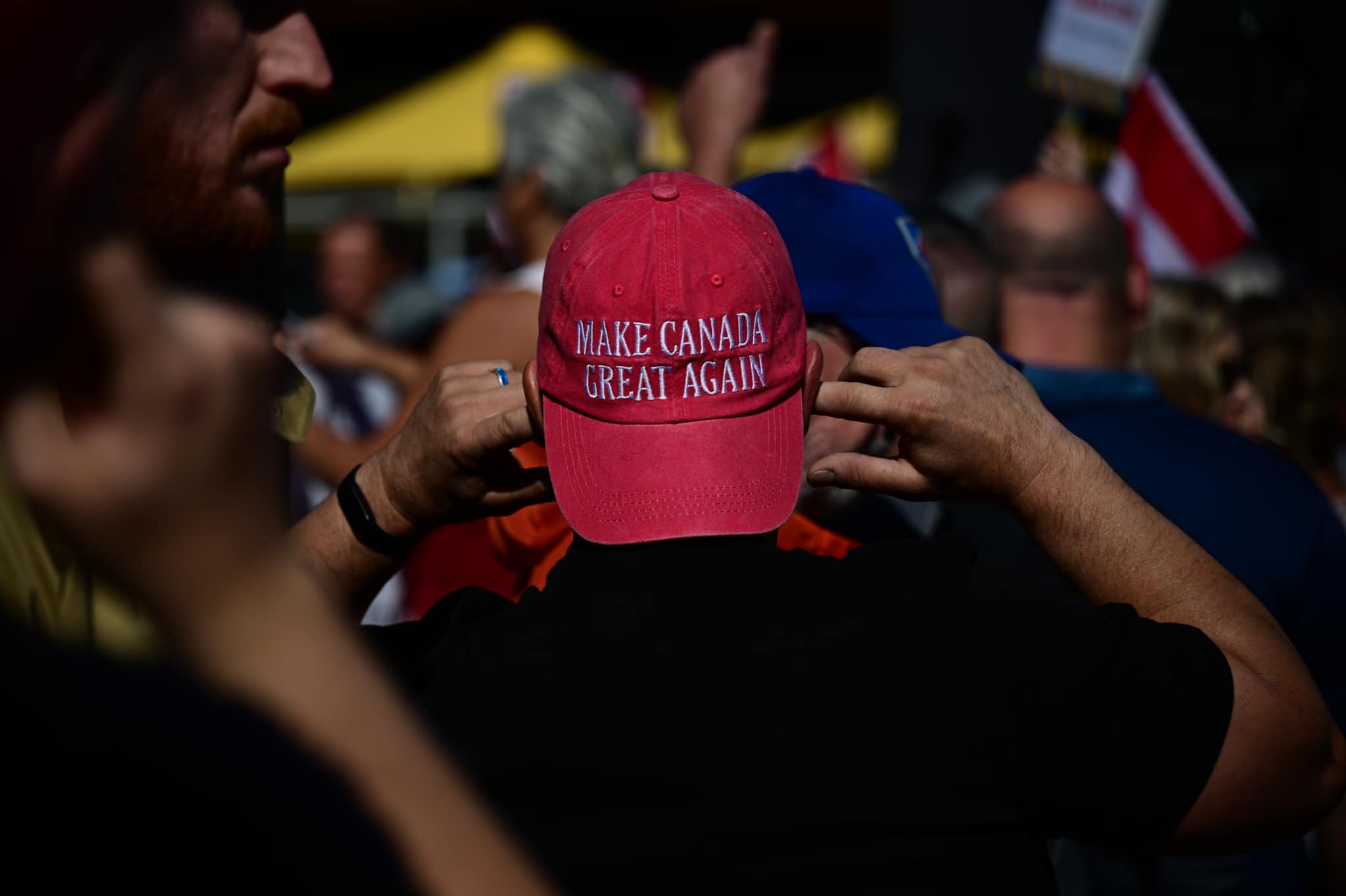 出席 #1millionmarch4children 遊行集會的支持者,頭戴 “Make Canada Great Again” 的極右鴨舌帽(Galileo Cheng 攝)