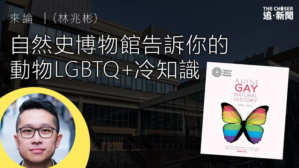 正當《同性伴侶登記制度法案》在香港鬧得熱哄哄之際,最近我在劍橋動物學博物館紀念品店發現了《A Little Gay Natural History》這本書,揭露過去在自然界中被掩蓋的動植物同性性行為,讓讀者重新思考什麼才是真正的「自然」。該書由倫敦自然史博物館出版,而劍橋動物學博物館6、7月亦舉辦了多場「Pride in Nature」導賞團,講解同性性行為在自然界中比許多人想像的還要普遍。如有立法會議員覺得同性戀是違反自然的話,麻煩閱讀一下該書。