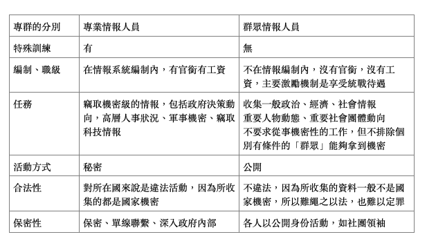這種「專群結合」、大打「人民戰爭」的傳統,最近得到進一步發揮和強調。202381日,國家安全部微信公眾號發佈文章《反間防諜需要全社會動員!》,提到反間諜工作「不僅需要國家安全機關發揮反間諜專門機關作用,更需要人民群眾廣泛參與、共同防範,築牢反間防諜的國家安全人民防線」。它強調:「在工作原則上,明確反間諜工作要堅持『公開工作和秘密工作相結合』、『專門工作與群眾路線相結合』在法律義務上,明確『一切國家機關和武裝力量、各政黨和各人民團體、企事業組織和其他社會組織,都有防範、制止間諜行為,維護國家安全的義務』,同時要求『國家安全機關在反間諜工作中必須依靠人民的支援,動員、組織人民防範、制止間諜行為』」。雖然這裡提及的只是反間諜工作,但間諜工作顯然也是走「專群結合」的原則和路線。這就說明,中共的對外滲透工作,在很大程度上也是依賴非專業的「群眾性」情報人員。