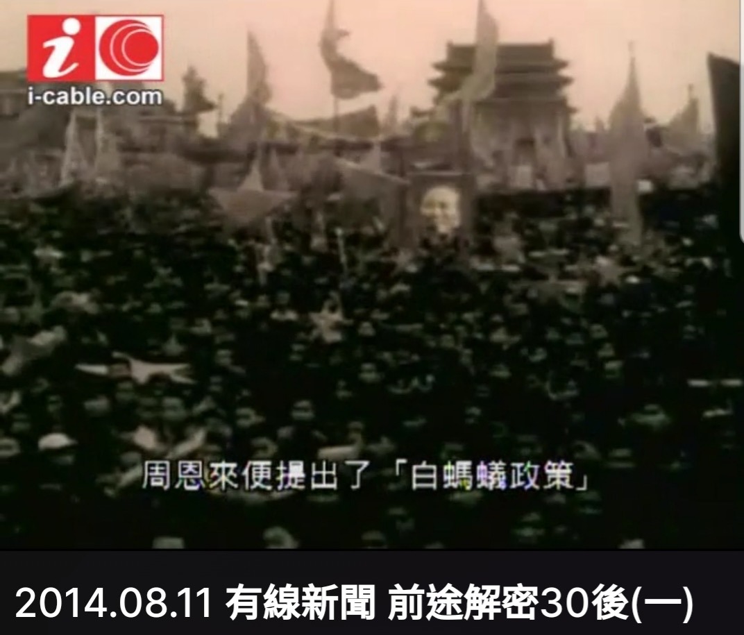 圖二:香港有線新聞《前途解密30後》截圖:「周恩來提出了『白螞蟻政策』」。