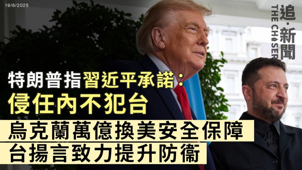 今日烏克蘭,明日台灣?美國總統特朗普上周五(15日)在美俄元首峯會召開前夕接受美媒訪問透露,中國國家主席習近平向他表示,習不會在特朗普任內揮軍侵略台灣。特朗普周一(18日)在美國白宮和烏克蘭總統澤倫斯基等舉行峯會,烏方被指向美方提出總值1,500億美元(11,702億港元)的安全方案,以換取美國在俄烏達成和平協議後對烏的安全保障。台灣外交部周二(19日)稱,台灣的安全是必須靠自己努力得來,強調台灣持續致力提升防衞能力,未來也會持續積極去做。