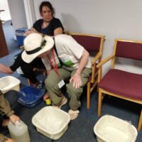 - 朝聖者浸腳舒緩疲勞。(圖片由讀者提供)