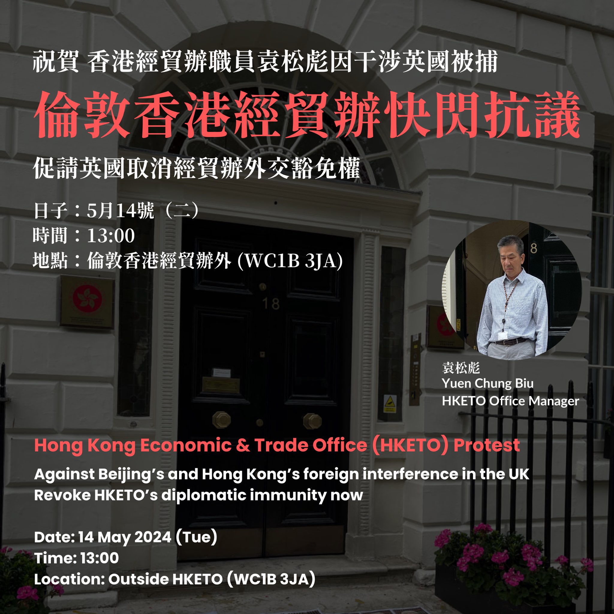 在英港人組織「港援」發起周二(14日)下午1時到倫敦經貿辦快閃示威,促請關閉在英經貿辦。流亡英國的社運人士「攬炒巴」劉祖廸亦在社交平台轉載有關活動,稱今次事件是一個良好的徵兆,反映英國政府認真應對北京與香港的跨境鎮壓及干預,認為是時候檢討英國以至其他民主國家的香港經貿辦所享有的外交特權。