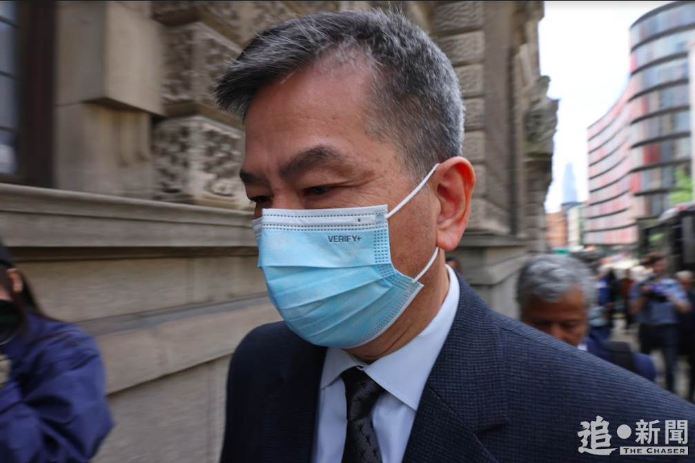▲袁松彪戴着口罩離開法院。(《追新聞》特約記者Reagan攝)