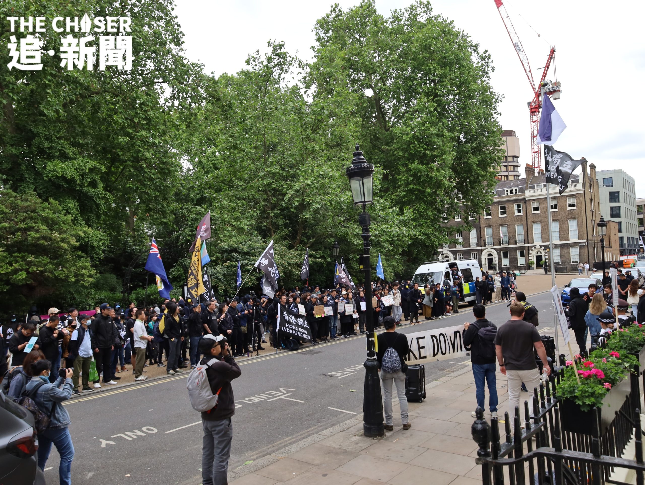 在倫敦,近500港人參與在香港駐倫敦經貿辦的集會,一證當年的抗爭未被遺忘,同時要求英國政府關閉香港駐倫敦經貿辦,杜絕間諜行為。