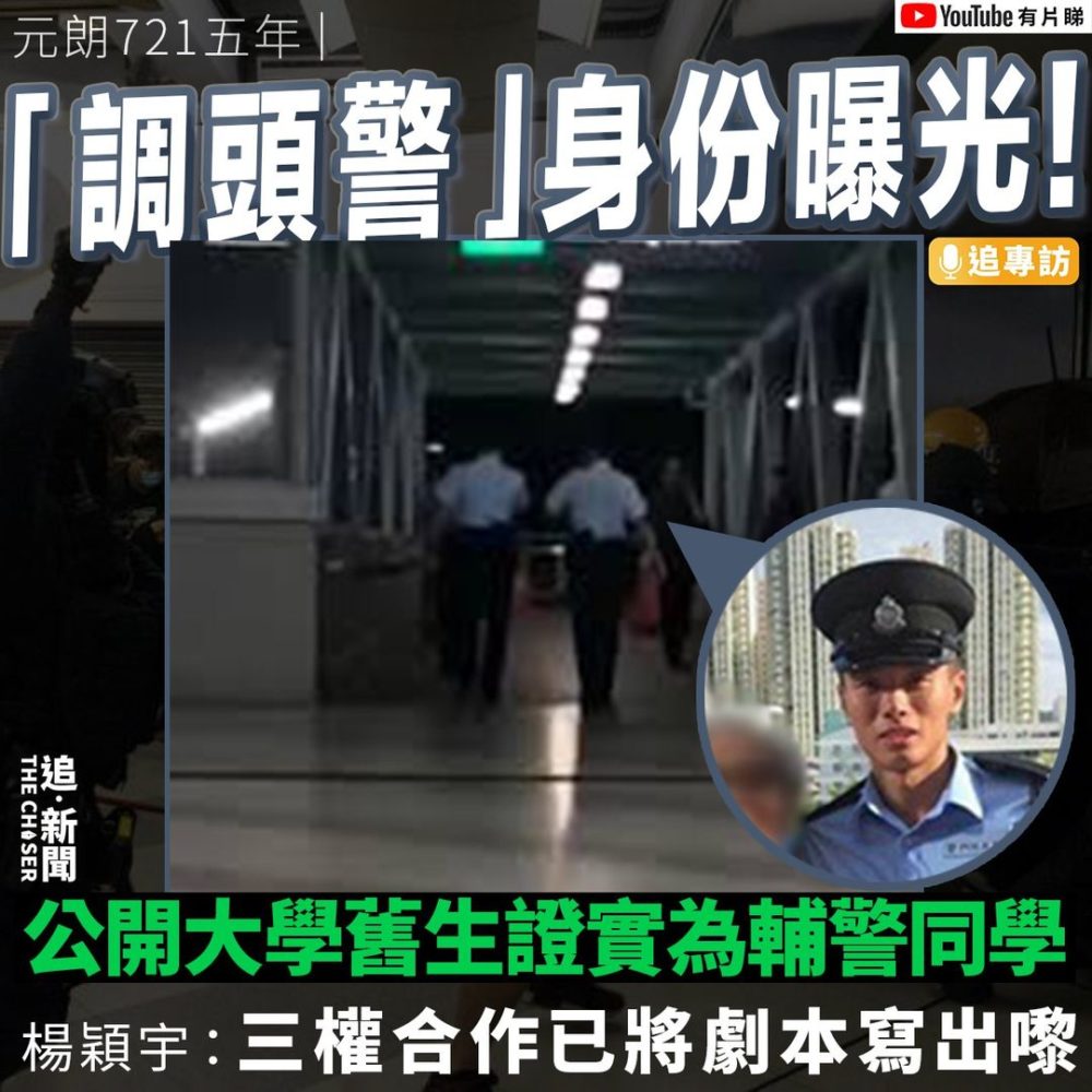 由香港考評局前經理(歷史科)楊穎宇管理Facebook《教育刺針》專頁英國時間9月1日發帖,揭露「721調頭警」身份,其中一人為香港公開大學(現已易名「香港都會大學」)的畢業生黎浩謙,在學期間擔任輔警,《追新聞》隨後作出跟進報道訪問楊穎宇,並在YouTube《追新聞》頻道上載訪問片。不過,「調頭警」身份相關報道分別被Facebook及YouTube封禁。Facebook本月8日起禁止香港用戶瀏覽《教育刺針》專頁《721調頭警身份》帖文;YouTube上月27日則基於「隱私權申訴」,將《追新聞》跟進訪問影片移除,《追新聞》已就相關情況向YouTube上訴,但截至周一(21日)仍未獲回覆。