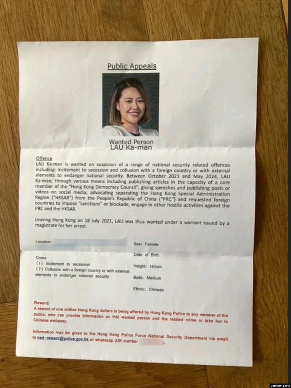 去年平安夜遭港警國安處懸紅通緝的海外港人劉珈汶、鍾翰林,周四(5日)在英國內政部會見國務大臣翟偉紳(Dan Javis)與外交部印太事務次官衛倩婷(Catherine West),雙方主要就被港警通緝後,接連出現誘捕他們到中國大使館領懸賞的舉報信作出跟進。國際特赦組織(Amnesty International)會員Vrigitte在六四集會向《追新聞》記者表示,她在居住的地方曾接獲來自中共發出的信件,已直接向當區議員呈上信件及反映跨境鎮壓在社區蔓延。