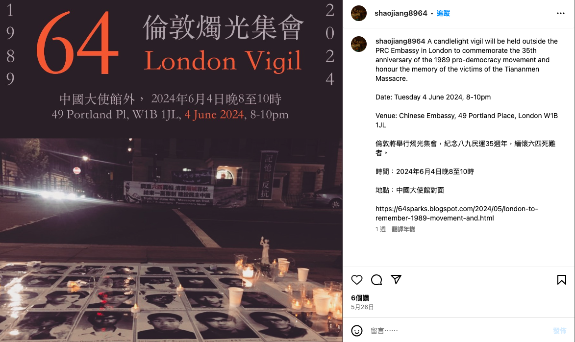 今年,六四35年在倫敦國會廣場集會,「白紙運動」年輕一代接棒;散居在英國各大城鎮的港人則串連起來毋忘六四,要求中共正視天安門的屠城責任,參與者動輒數百人。