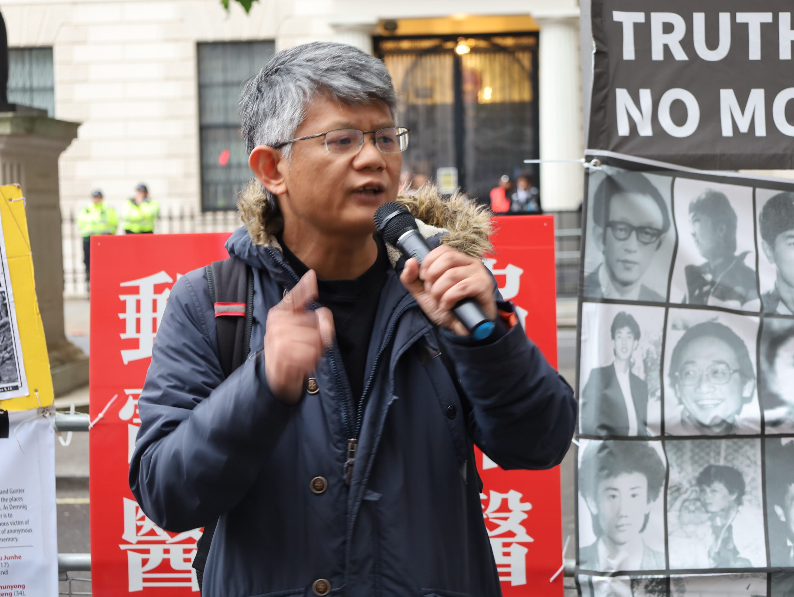 六四倖存者邵江作為活動組織者,過去30多年來一直堅持在中國駐英大使館舉行燭光晚會。他接受《追新聞》訪問時表示,中共一直用「遺忘」來應對天安門事件,年輕人根本不知道真相,「所以35年讓人重新看待1989年的運動、六四屠殺,是非常重要的。」他特別提到,今年參與者都戴上口罩遮臉,反映中共境外跟蹤監控已延伸到海外地區,讓各人產生恐懼感。
