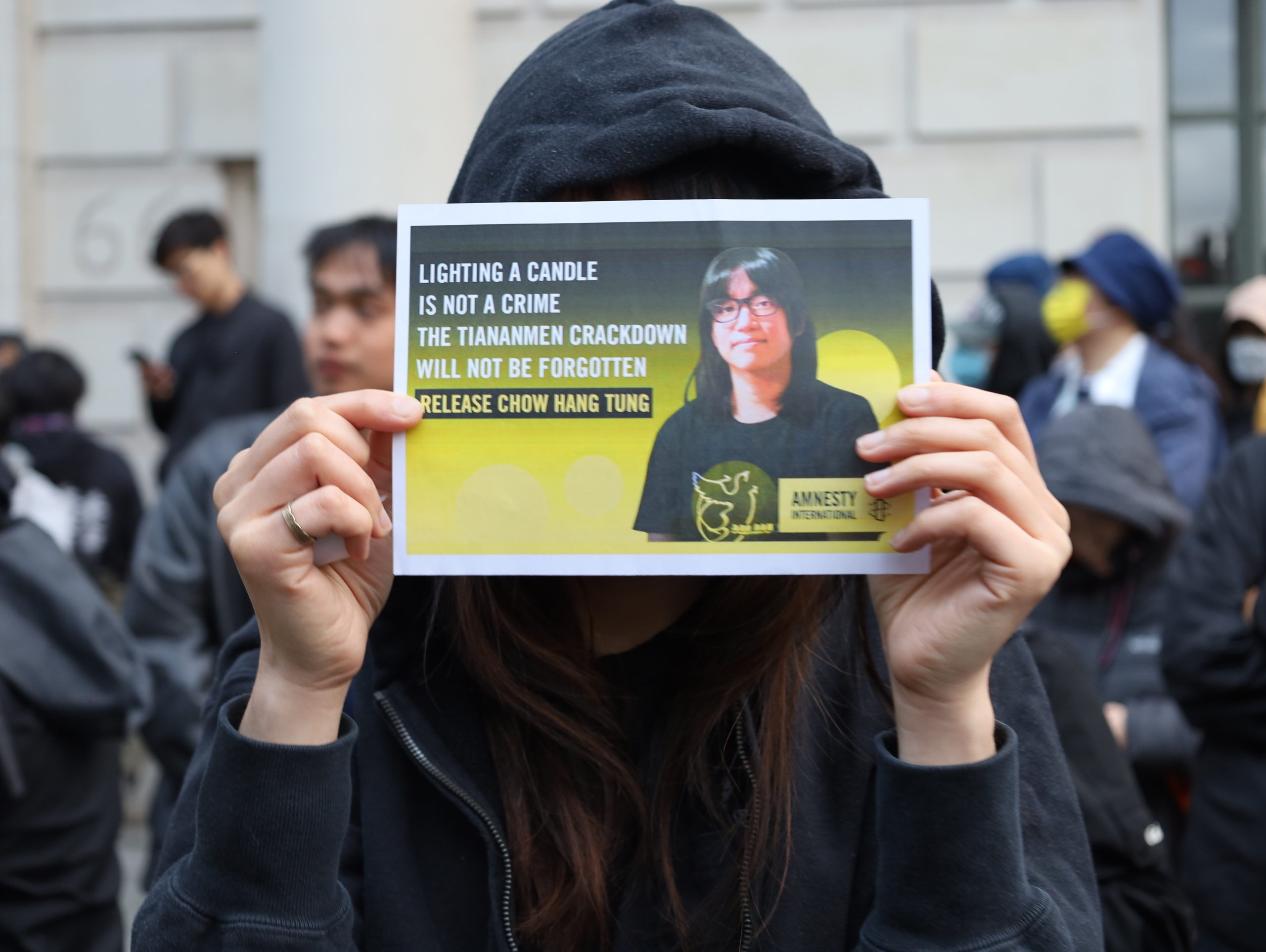 六月四日,這夜,倫敦晚上9時許才日落西山,不到8時在中國駐英大使館前已擠滿約300人。上月當選Wokingham議員的中西區前區議員吳兆康被問到前支聯會副主席鄒幸彤再次被捕的看法時,他批評政權無理打壓。 英國第二大BNO港人聚居地、曼徹斯特傍晚在聖彼得廣場(St. Peter’s Square)舉行一連兩場與六四相關的集會,逾300名在英港人出席。被港警國安處懸紅通緝的「攬炒巴」劉祖廸呼籲在英港人在即將舉行的大選,運用手上一票向政黨施壓,對香港作出更多支援。 她坐在面向禮台右面的第一排,淚水無聲無息滑落臉龐。逾200名港人出席諾定咸六四35年周年悼念晚會,在民主烈士永垂不朽紀念牌前默哀、獻花,有港人勾起血的往事熱淚奪眶而出,現場儼如被禁維園燭光晚會難忘一幕。
