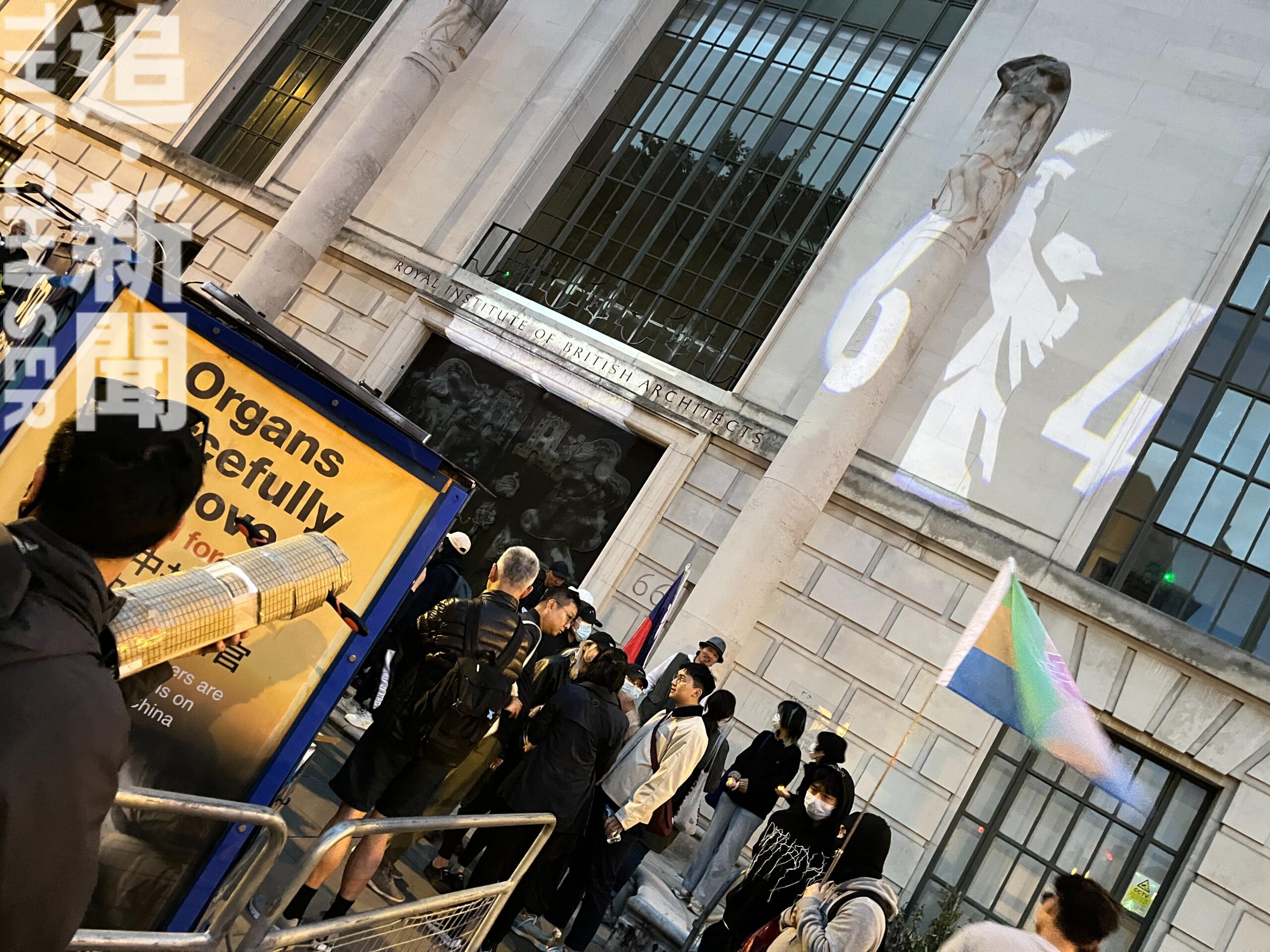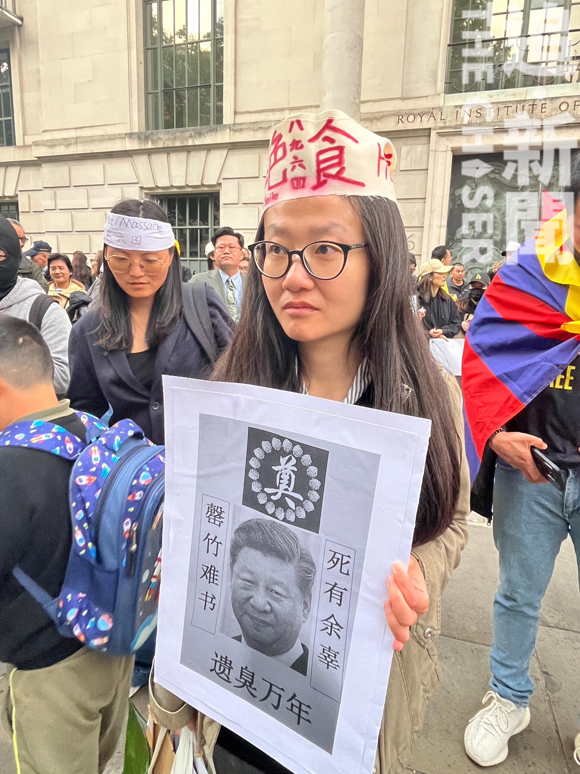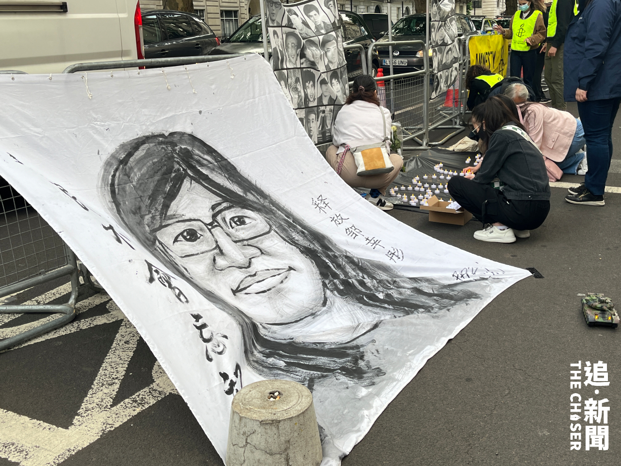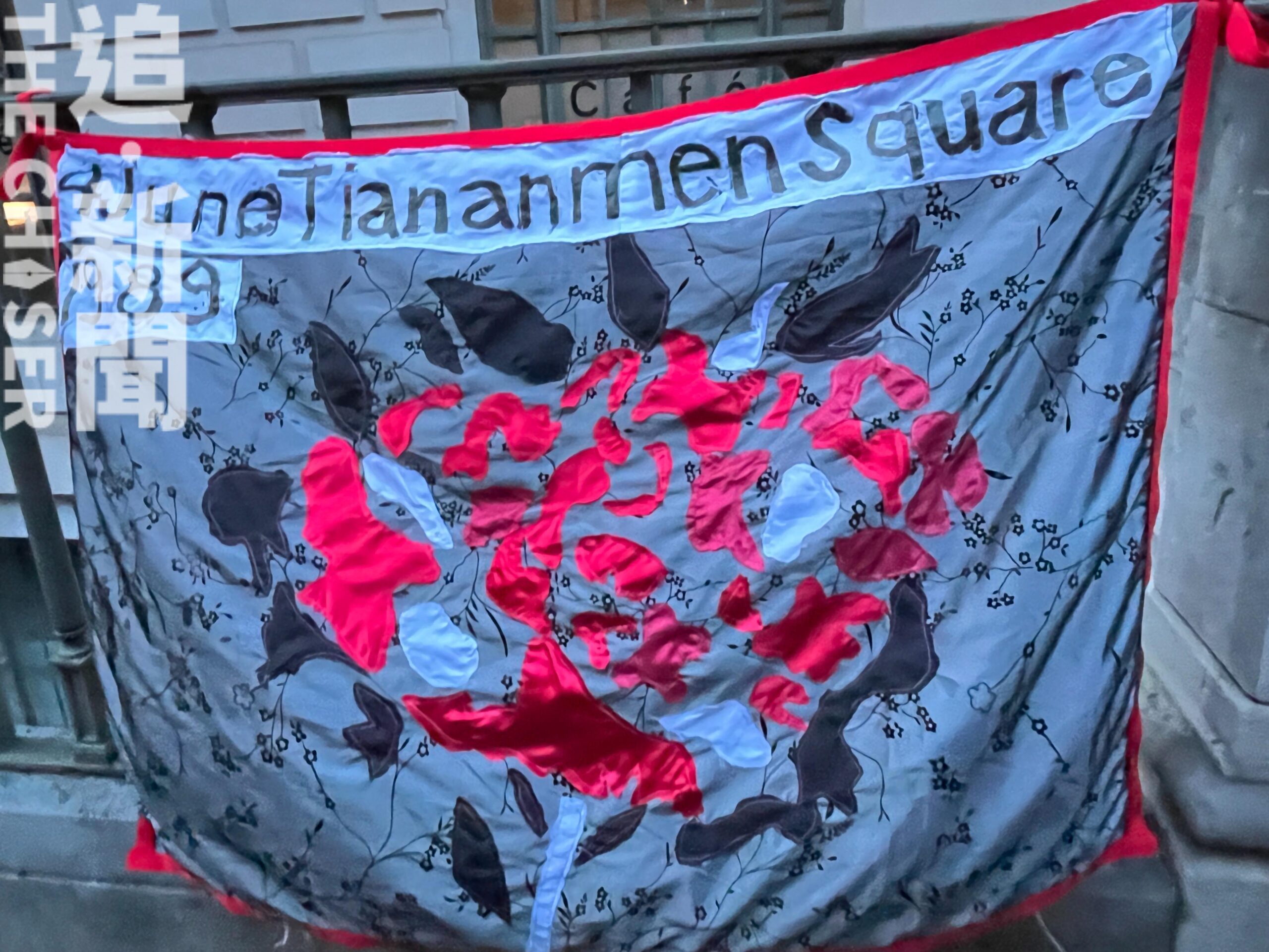 國際特赦組織會員Vrigitte與Amanda則用布碎縫製一幅橫額,表達對六四天安門屠殺的痛心。居住在南倫敦的Vrigitte向記者表示,在其居住的地方曾接獲來自中共發出的舉報信件,要求本地居民將被通緝海外港人誘到中國大使館領懸賞,她已即時向當區議員反映跨境鎮壓的猖獗。香港監察(Hong Kong Watch)信託人羅傑斯(Benedict Rogers)表示,多名海外港人遭港警懸紅通緝,而他本人與其母親也收到恐嚇信,「對我來說沒有甚麼大問題,因為沒有家人在香港,也被港府拒絕入境,但對很多香港人來說是一個警號,英國政府需要嚴肅處理跨境鎮壓問題。」