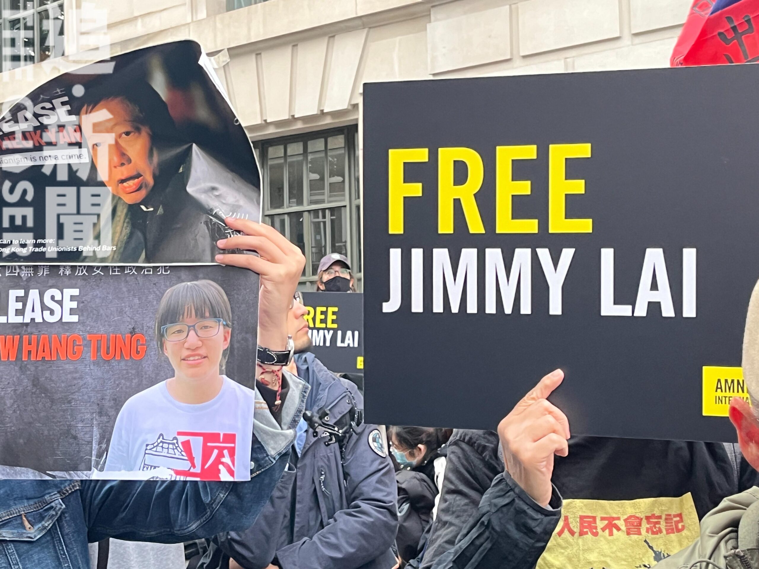 「但有一個夢,不會死,記着吧! 無論雨怎麼打,自由仍是會開花。」《自由花》歌聲繼續響徹中國駐英大使館外街頭。逾500人手持燭光,薪火相傳毋忘慘痛,同時支援在囚的前支聯會骨幹成員鄒幸彤、何俊仁、李卓人,以及壹傳媒創辦人黎智英,在海外仍能發聲下肩負將燭光延續下去。