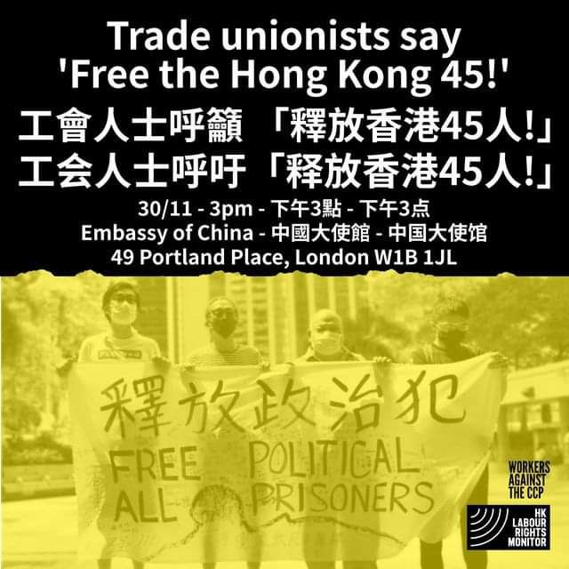 主辦團體:香港勞權監察和Workers Against the CCP連結英國工會成員