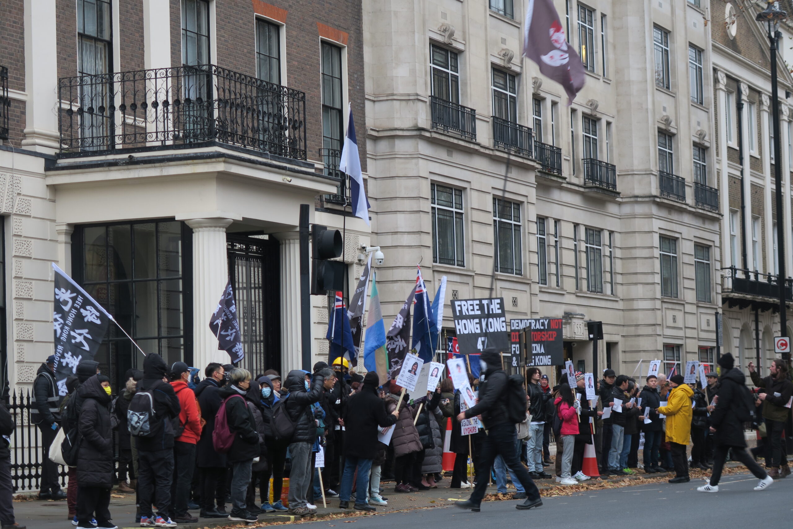 - ▲ 周日倫敦有團體於中國駐英大使館外集會,聲援香港被捕人士。