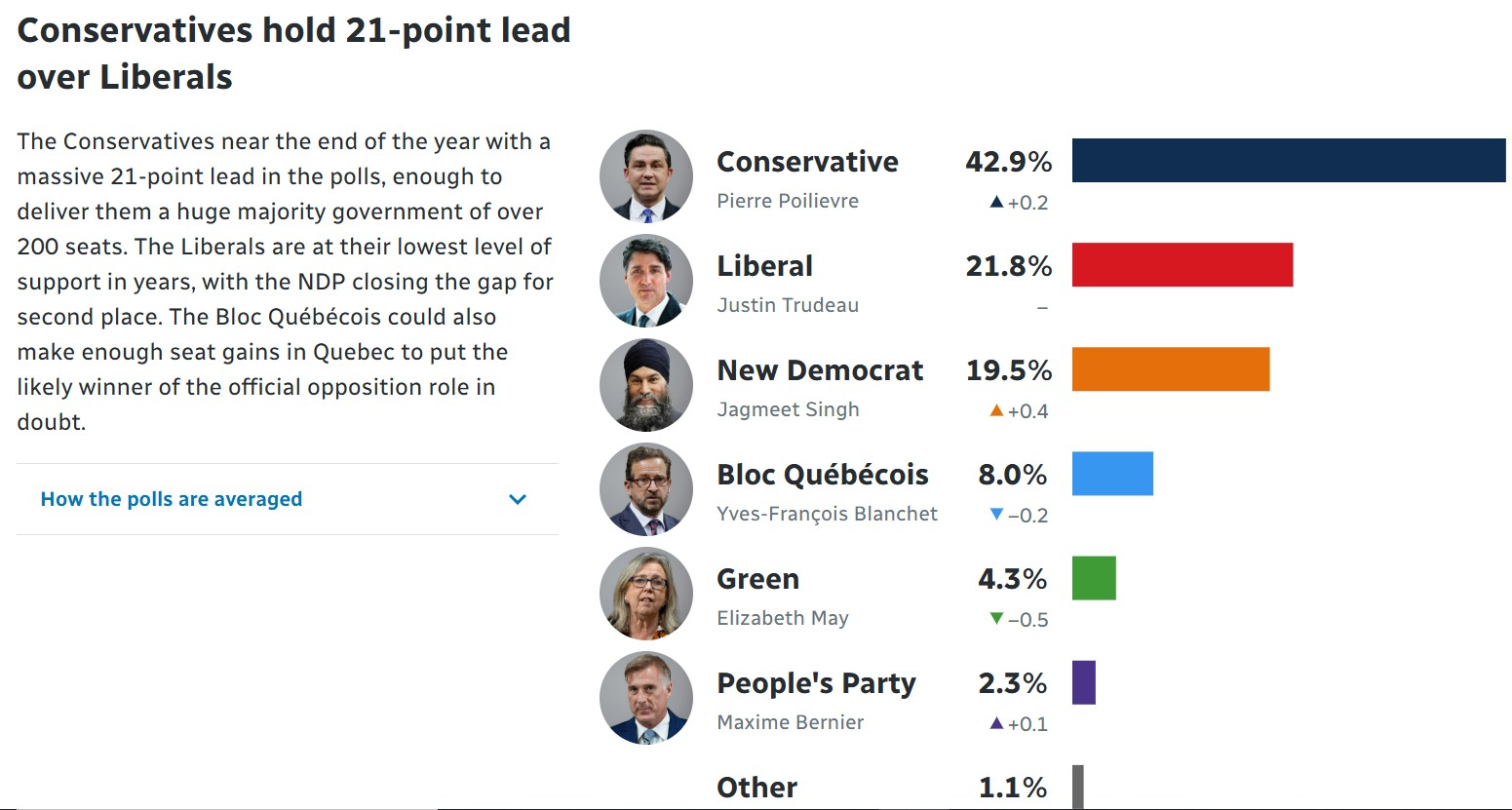 杜魯多對於會否下台暫時未有公開回應,只稱日內有決定。加拿大傳媒CTV引述消息稱,杜魯多正考慮辭職或提前大選。加拿大大選原定最遲明年10月舉行。根據加拿大廣播公司最新民調顯示,現時博勵治的支持率達42.9%,杜魯多只得21.8%,雙方差距接近一倍。