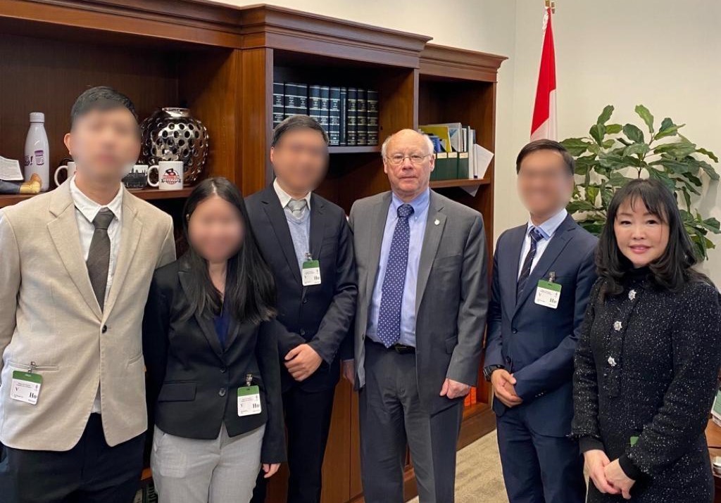 - 加中關係委員會主席Ken Hardie(右三)會見了聯盟代表,及香港監察創辦人Aileen Calverley。(香港監察提供圖片)