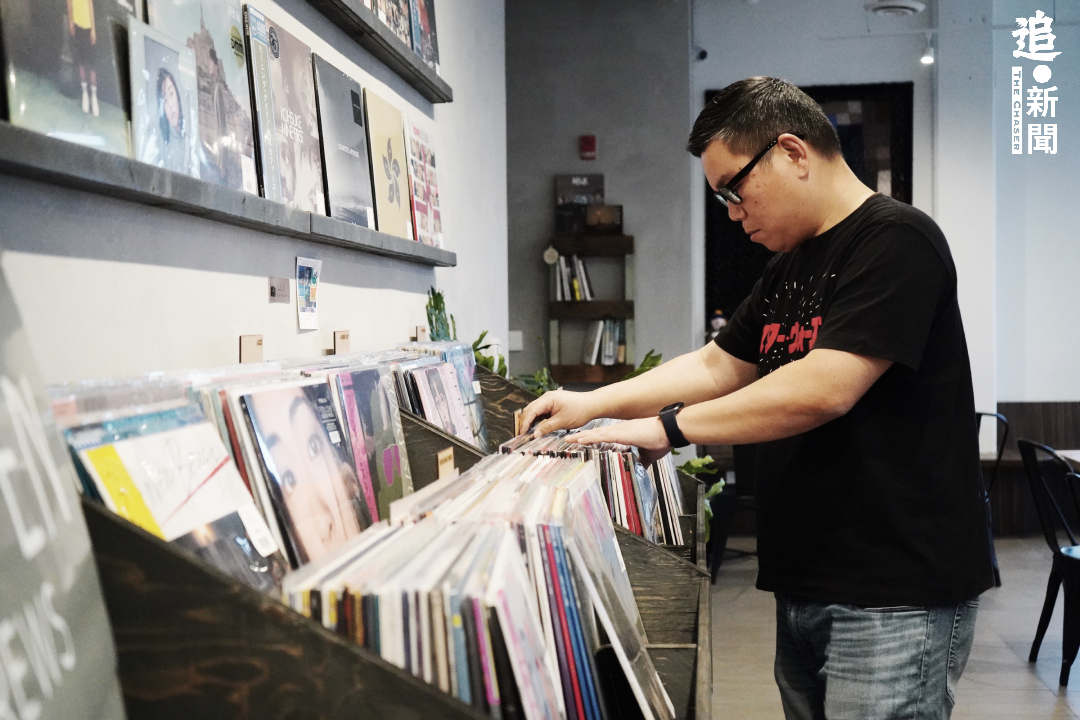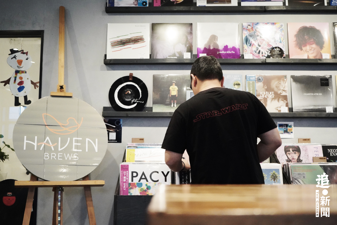 - 咖啡店一角擺賣黑膠唱片。
