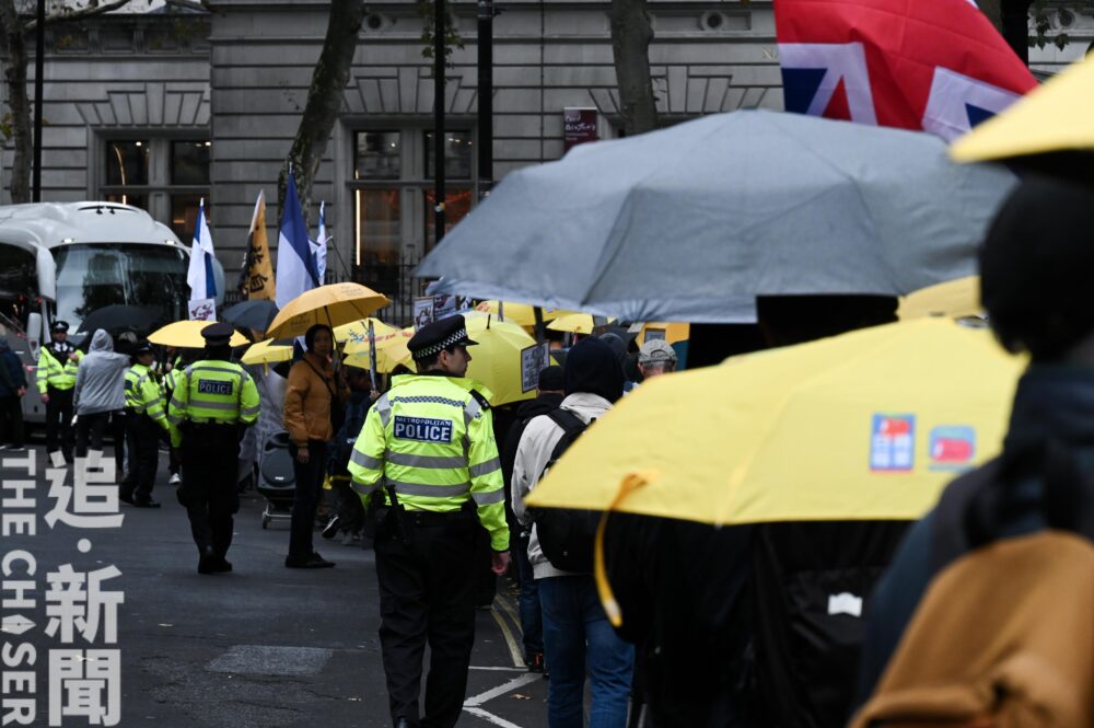 大批在英港人聯同本地居民、維吾爾人及華人等不同族裔團體,周日(9月28日)再度走上倫敦街頭,反對中國超級大使館計劃,是八個月內針對建館計劃的第六次大規模示威,參加者同日亦紀念香港雨傘運動11周年。大會指有至少1,500人從英國不同城市聚首倫敦參與。今次遊行的路線與上月不同,大會臨時決定途經唐人街,期間有華裔男子以粗口辱罵示威者,並一度獲警方放走,引起參加者及大會義工不滿,最後即場報案處理。