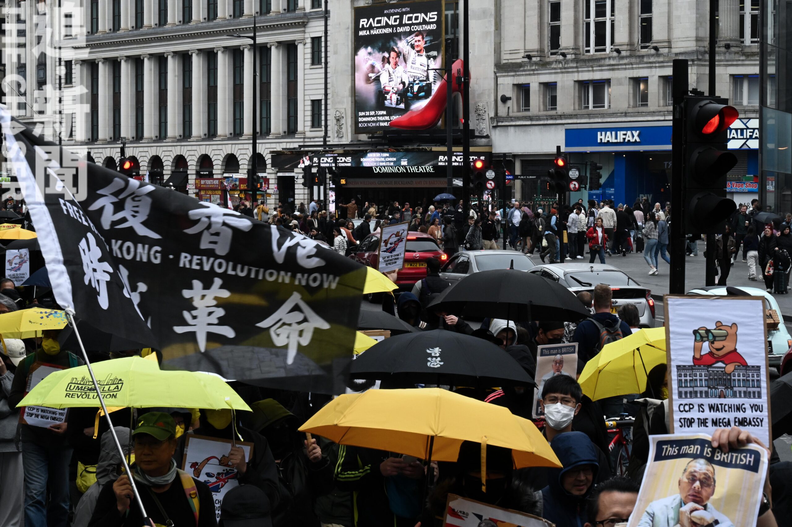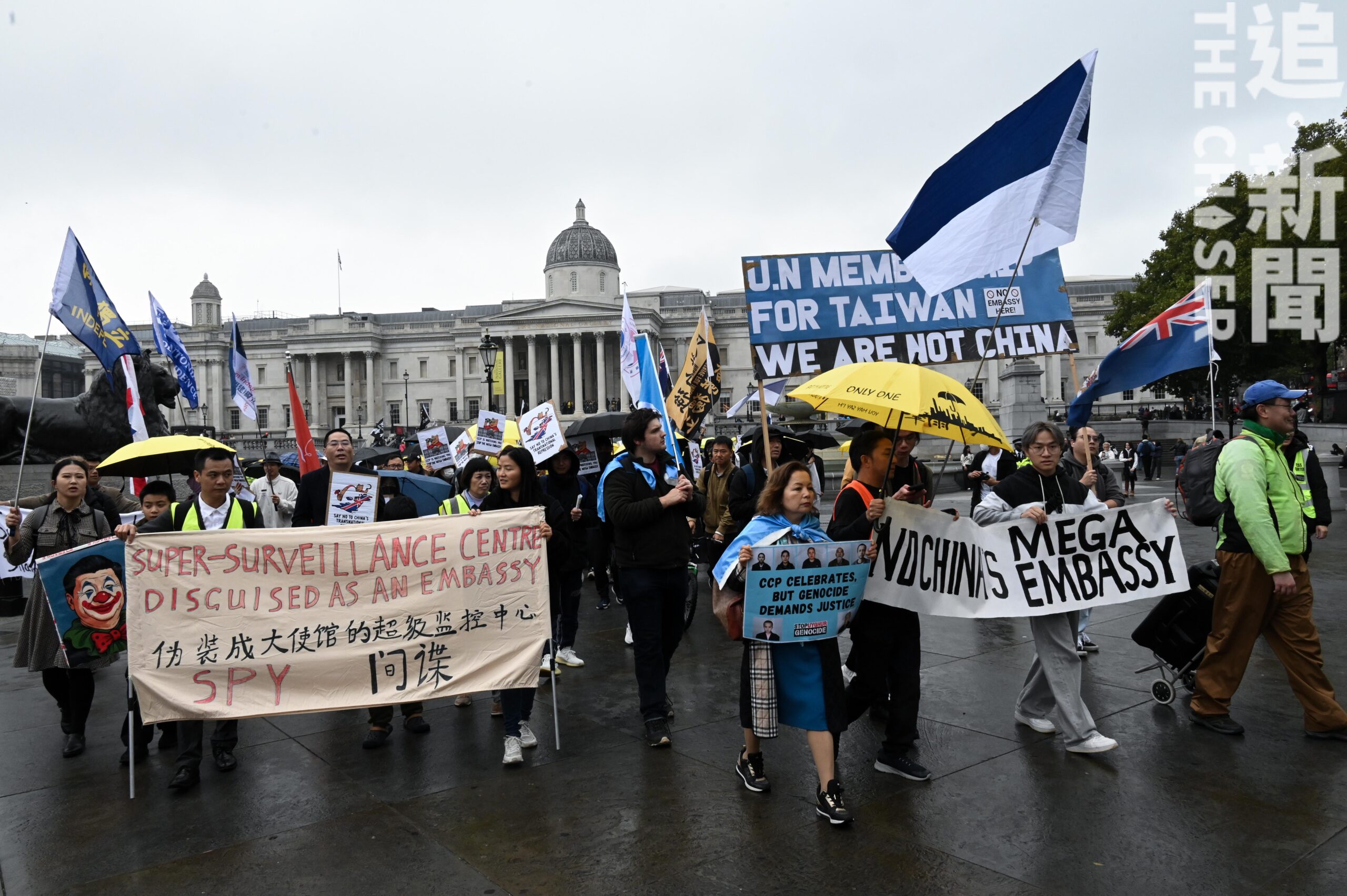 大批在英港人聯同本地居民、維吾爾人及華人等不同族裔團體,周日(9月28日)再度走上倫敦街頭,反對中國超級大使館計劃,是八個月內針對建館計劃的第六次大規模示威,參加者同日亦紀念香港雨傘運動11周年。大會指有至少1,500人從英國不同城市聚首倫敦參與。今次遊行的路線與上月不同,大會臨時決定途經唐人街,期間有華裔男子以粗口辱罵示威者,並一度獲警方放走,引起參加者及大會義工不滿,最後即場報案處理。