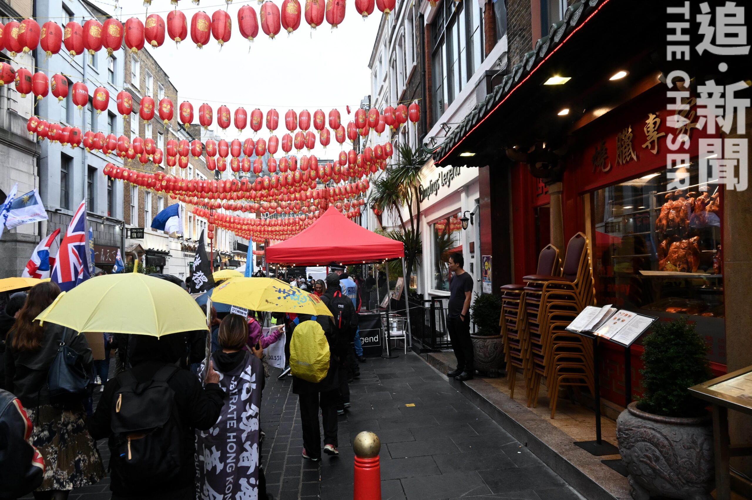 隊伍其後轉入 Shaftesbury Avenue 後再進入倫敦唐人街,亦是遊行參加者最力竭聲嘶的一段路。據大會消息指,轉入唐人街的一段遊行路線事前未有通知大倫敦警方,是臨場判斷認為「夠人」而作的決定。而兩旁的非華裔途人彷彿對有華人面孔在唐人街反中共的一幕感到相當好奇,紛紛拿起手機拍片。