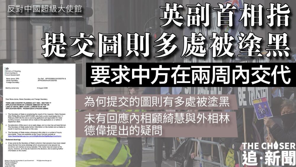 中國擬在倫敦皇家鑄幣廠舊址興建超級大使館的計劃出現新進展,負責就審批項目作最後決定的英國副首相韋雅蘭(Angela Rayner),去信要求中方交代為何提交的圖則有多處被塗黑,以及未有回應內相顧綺慧(Yvette Cooper)與外相林德偉(David Lammy)提出的疑問,要求中方在兩周內回覆。