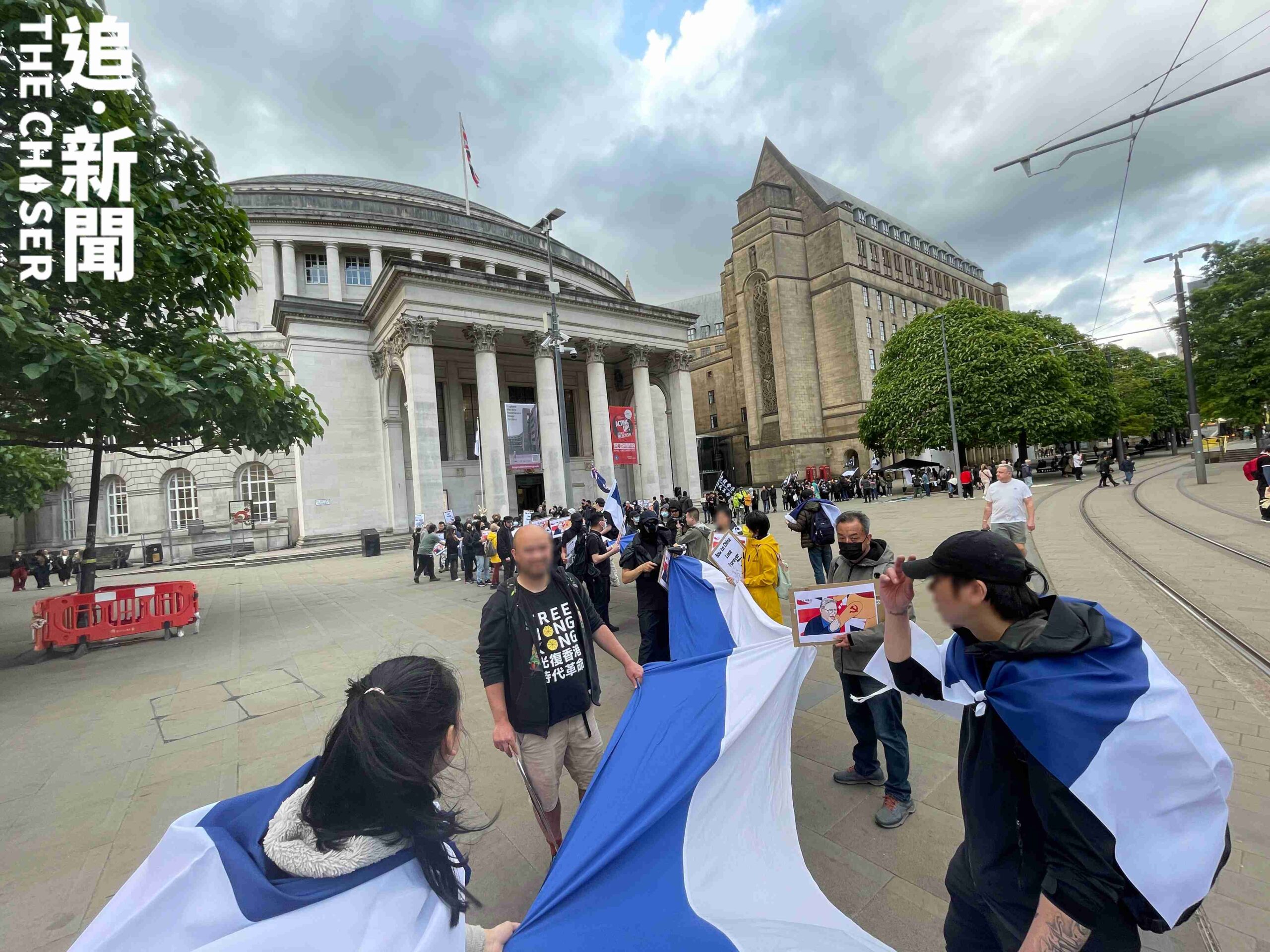 反送中運動至今相隔6年,對無數香港人來說是無法磨滅的記憶。在英國曼城,有港人毋懼跨境鎮壓,選擇在6.12這天集會,並遊行到中國領事館外示威。示威者在市中心以人鏈手持紙牌砌成英文語句,提醒本地人要提防中共威脅。遊行隊伍抵達中領館後,在門外踐踏中共國旗及黨旗洩忿,並以廣東話粗口表達不滿。有參加者相信總有光復香港的一天,勉同路人繼續堅持。