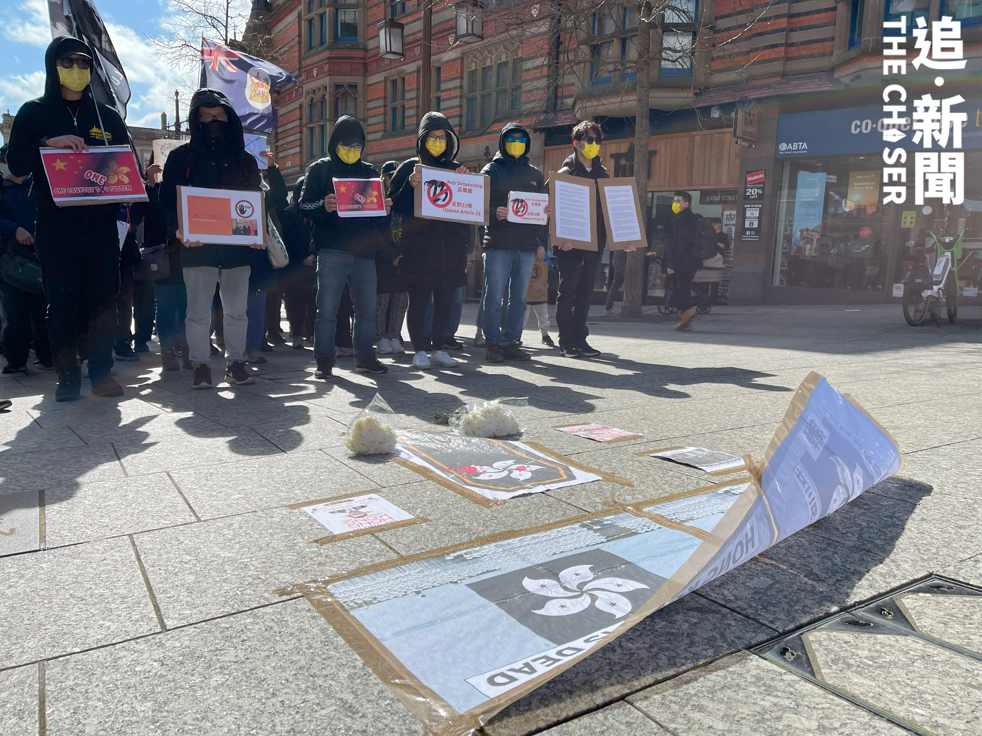 「一鞠躬 、二鞠躬、三鞠躬。」香港《23條》周六(23日)刊憲生效,英國英格蘭中部諾定咸近百港人冒著狂風暴雨甚至冰雹快閃集會反對惡法,集體向印有香港區徽的紙棺公開行三鞠躬禮,哀悼香港核心價值自由已死。有港人怒斥:「一個完全沒有言論自由的空間,你說值不值得反?」有港人批評23條含糊廣泛,擔心留港港人隨時被屈。有上海人坦言對香港處境感到悲憤,認為23條宣傳恫嚇多於實際。一直挺在英港人抗爭的英國工會人士批評英國政府行動不足。集會組織港人團體表明無懼另一套宇宙國安大法,堅持舉行反送中運動5周年紀念行動。