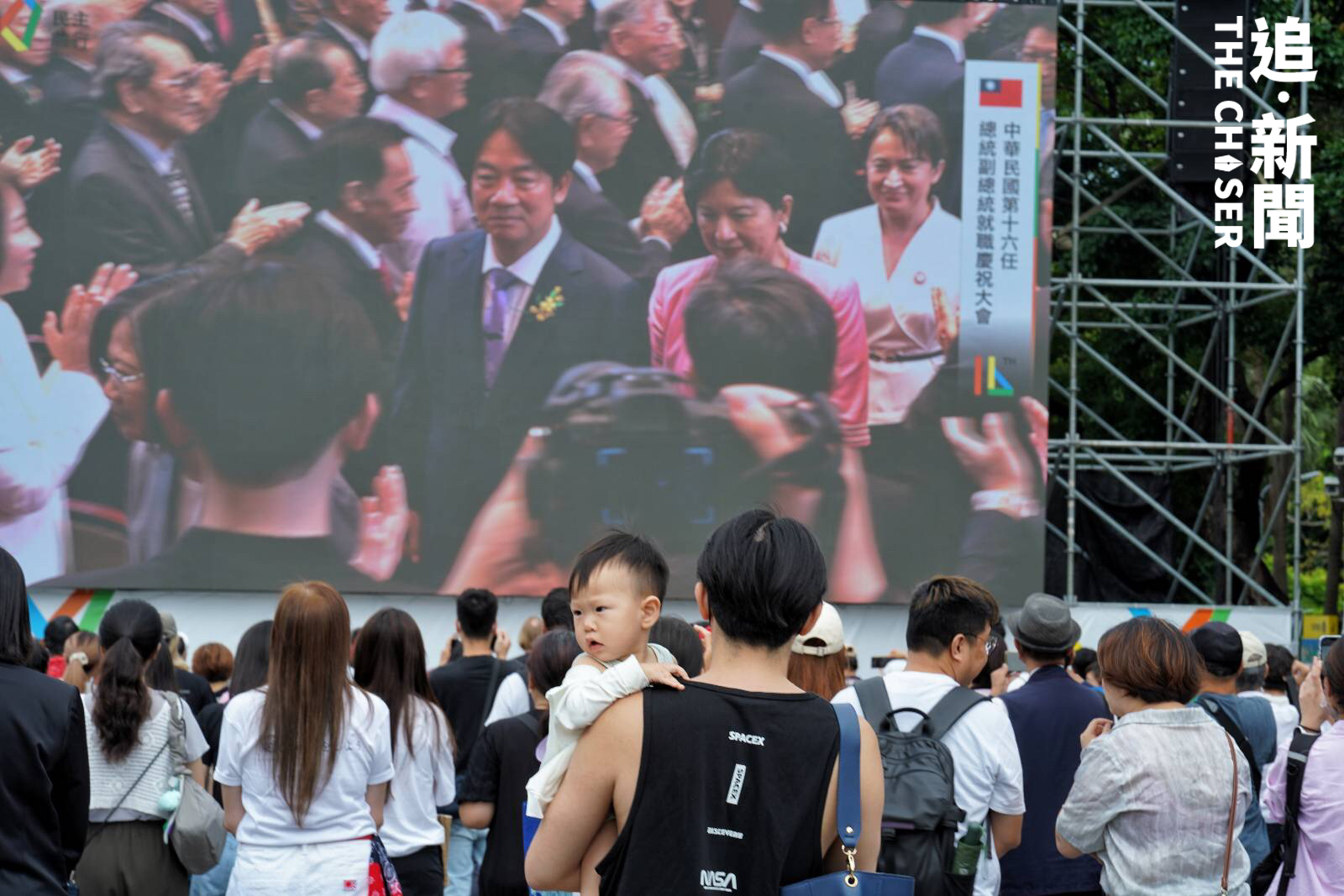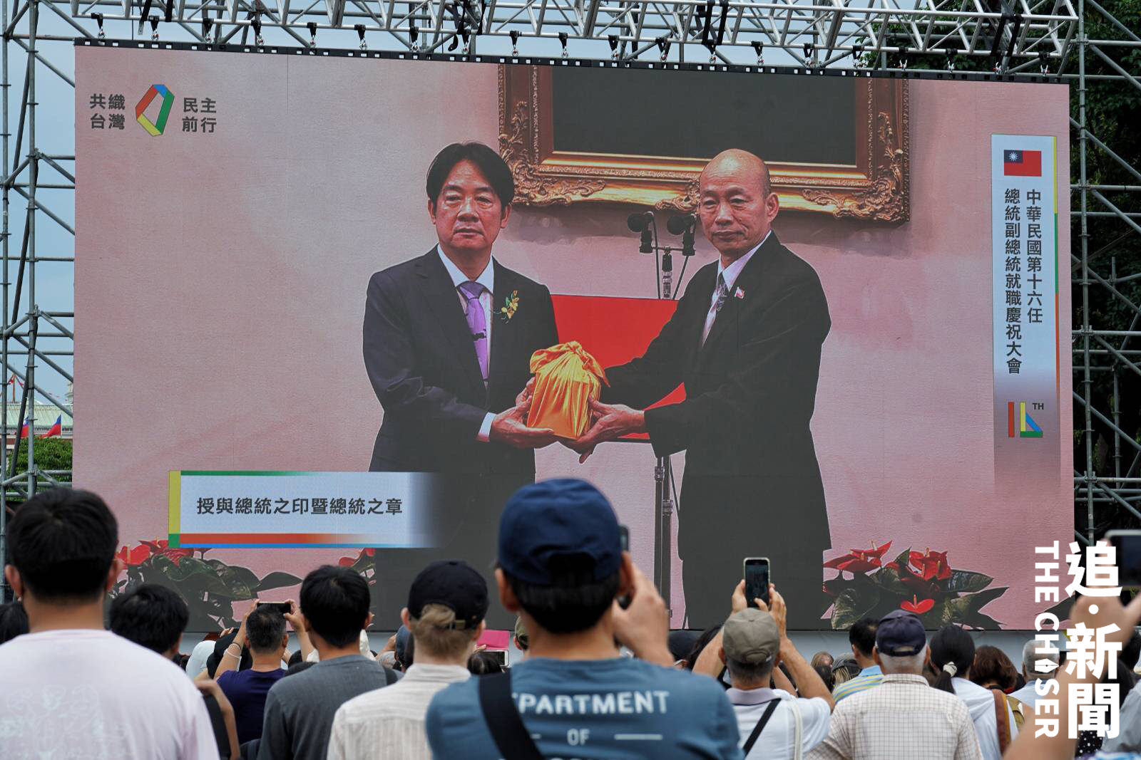 中共加強對台文攻武嚇,台灣內部朝小野大格局下,民進黨賴清德周一(20日)在本身是國民黨的立法院長韓國瑜手中接下中華民國之璽、榮典之璽,並在總統府前廣場發表就職演說,前民主黨成員、前黃大仙區議員徐百弟、台灣香港協會理事長桑普等近年遷台定居的香港人獲邀出席典禮,不少台灣人在總統府外自由觀禮區觀看就職禮電視直播。典禮奏樂期間,一名男子亦在自由觀禮區高舉中國五星紅旗及中華民國青天白日滿地紅旗,主張兩岸和平,立即被場內工作人員制止,亦引來觀禮人士不滿。