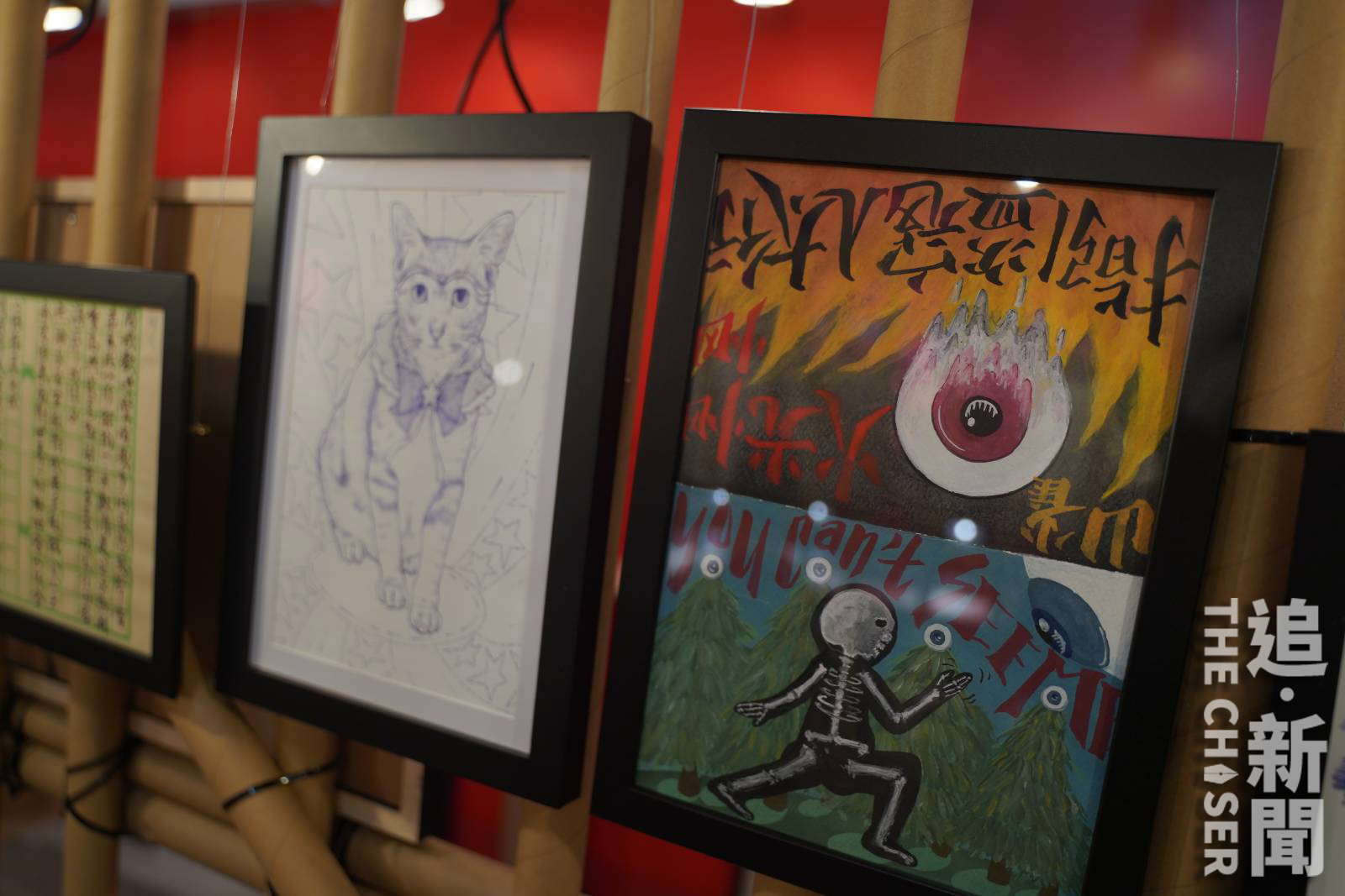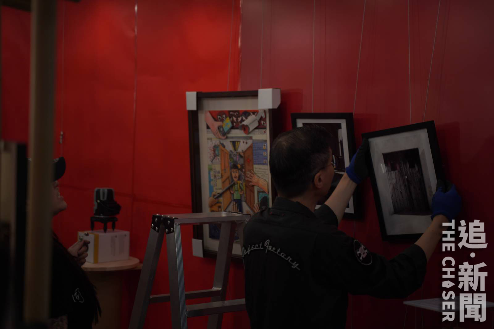策展人:牆壁貼上紅色象徵被中共紅線包圍