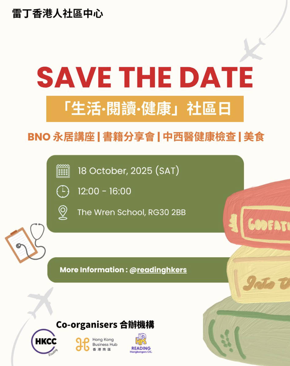 在英港人周末活動浪接浪!雷丁周六(18日)舉行「生活・閱讀・健康」社區日,鍾劍華博士開壇主講《黎智英傳》書籍分享,大家無需預先閱讀,只要帶著開放心靈,就可和鍾博一齊探索書中精髓。
