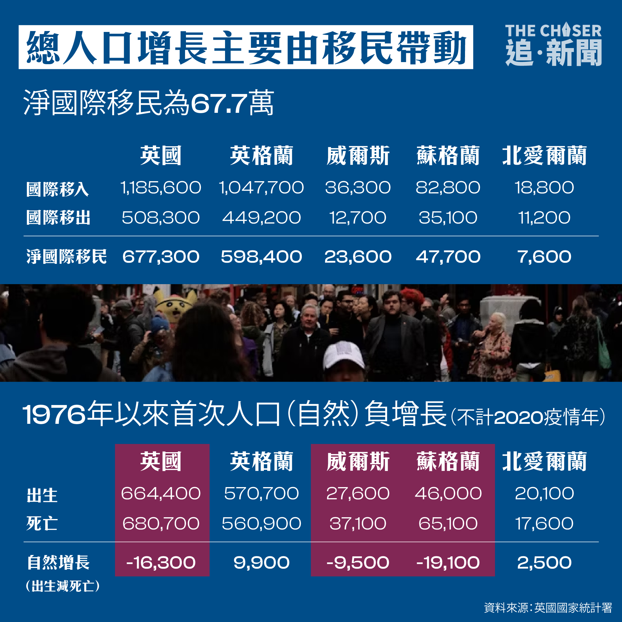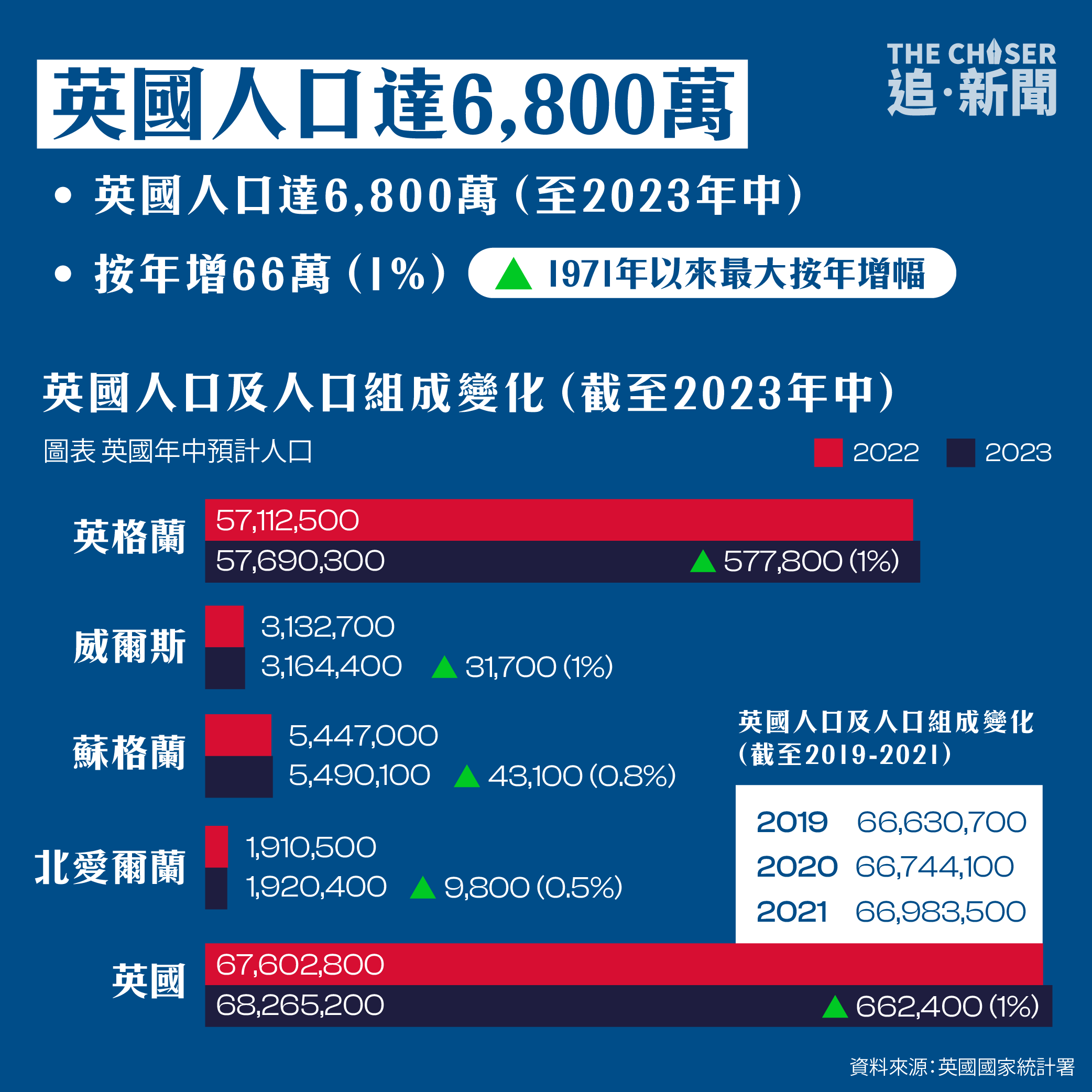 圖解DATA|英國人口按年升1%至6800萬 增長主要由移民帶動