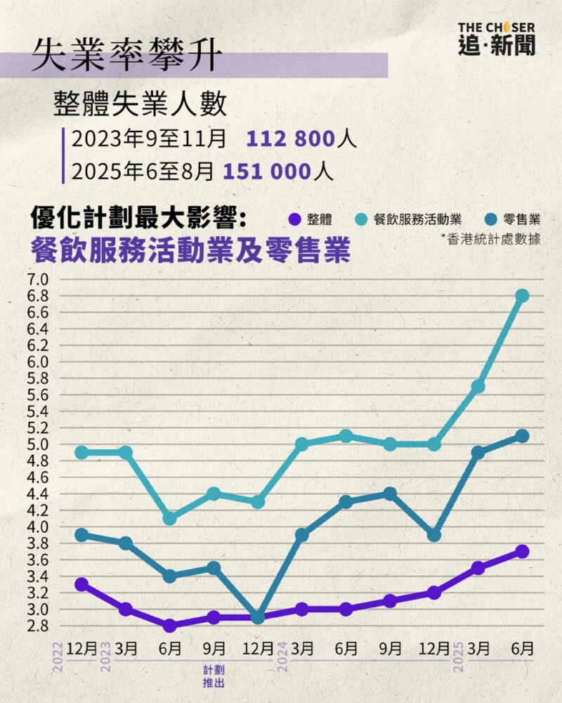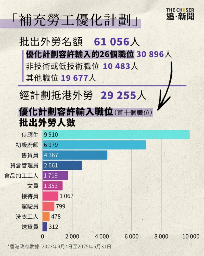 自從香港特區政府於2023年放寬外勞輸入政策以來,已有約三萬名外勞抵港。然而,本地失業率同期卻呈上升趨勢,在今年6月至8月期間攀升至3.9%,創下自2022年8月以來的新高。根據香港勞權監察早前發表的報告,「補充勞工優化計劃」實施後,每月平均批出近三千名外勞,數字相當於以往一年獲批的總人數。報告認為,外勞輸入已出現「擠出效應」,對本地勞工構成壓力,而外勞輸入較多行業亦與失業嚴重的行業掛勾。