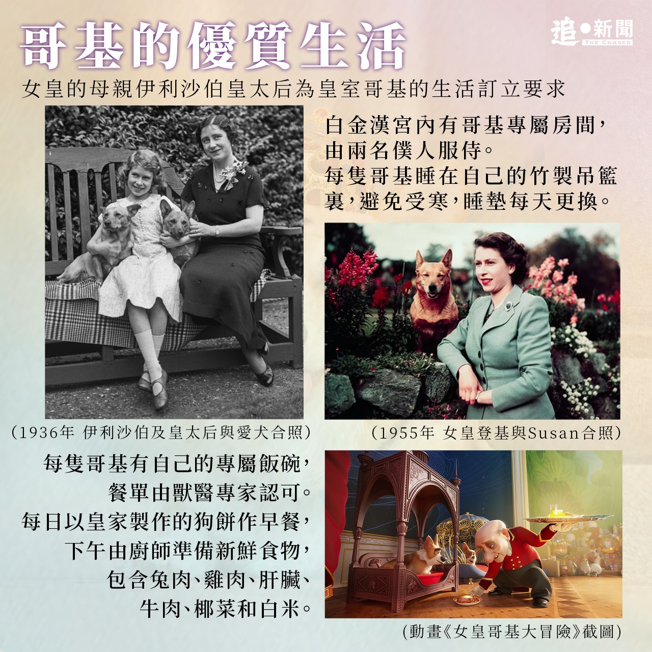 英女皇伊利沙伯二世出名愛狗成癡,尤其熱愛哥基,在位70年已飼養超過30隻愛犬,全屬首隻哥基Susan的後裔。哥基的身影甚至連女皇度蜜月也如影隨形,更曾陪同英女皇與「007」James Bond在2012倫敦奧運開幕宣傳片中出演!2019年亦有電影商以皇室哥基為藍本,製作出3D冒險喜劇動畫《女皇哥基大冒險》(The Queen’s Corgi),在各電影評分平台獲得高度評價。