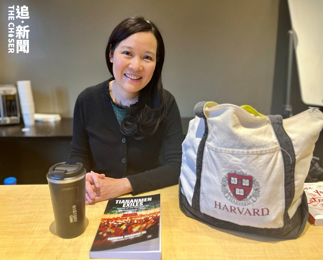 ▲一直記掛中大的何曉清,拍照時特別將中大歷史系的水杯放在顯眼位置,並笑說:「寫住Hong Kong㗎!」